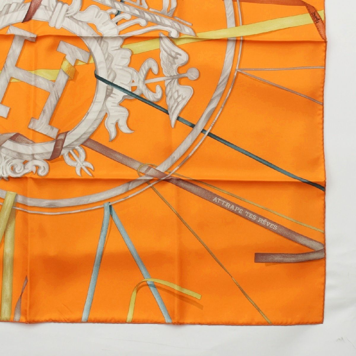 エルメス シルク カレ90 ATTRAPE TES REVES 夢をつかめ スカーフ オレンジ