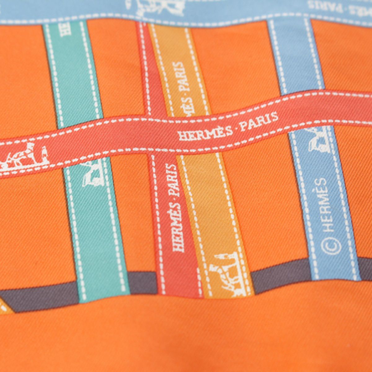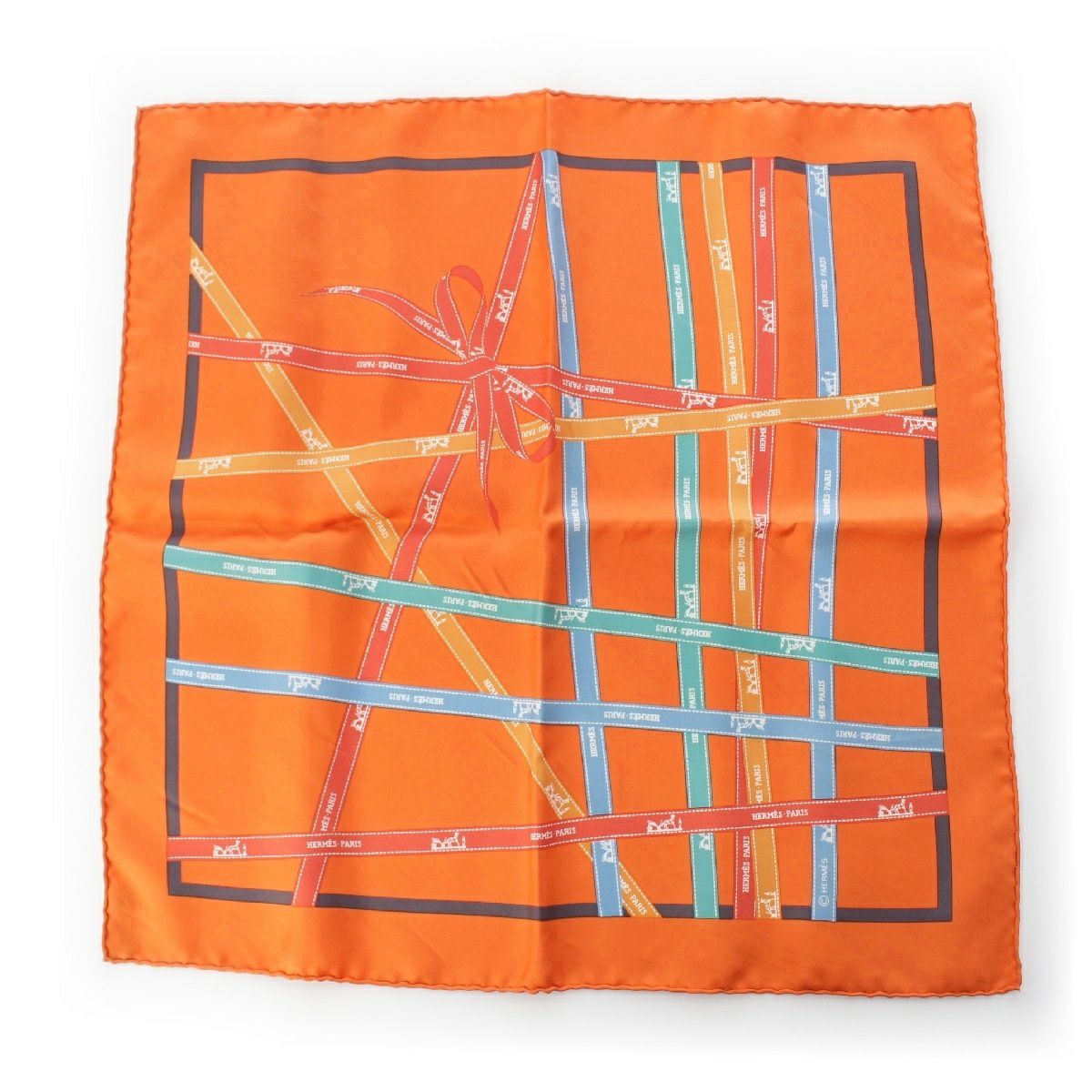 エルメス プチカレ40 ボルデュック柄 スカーフ ハンカチ オレンジ