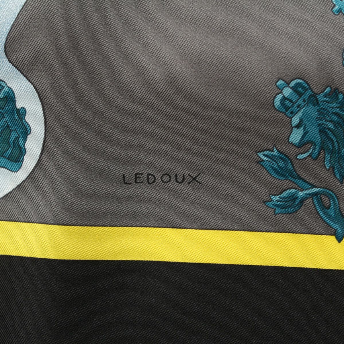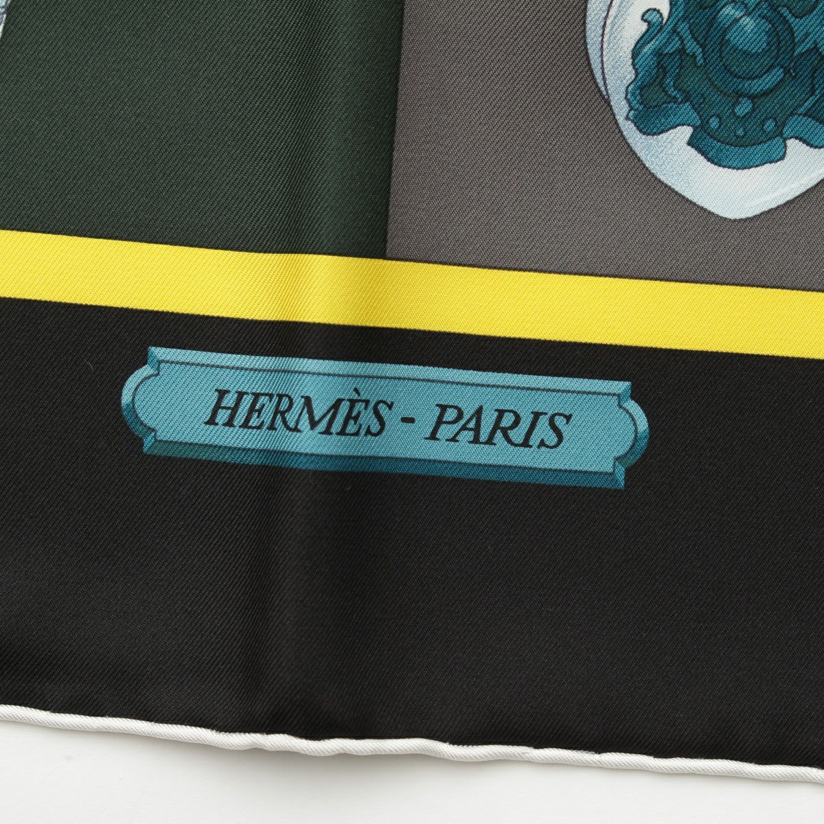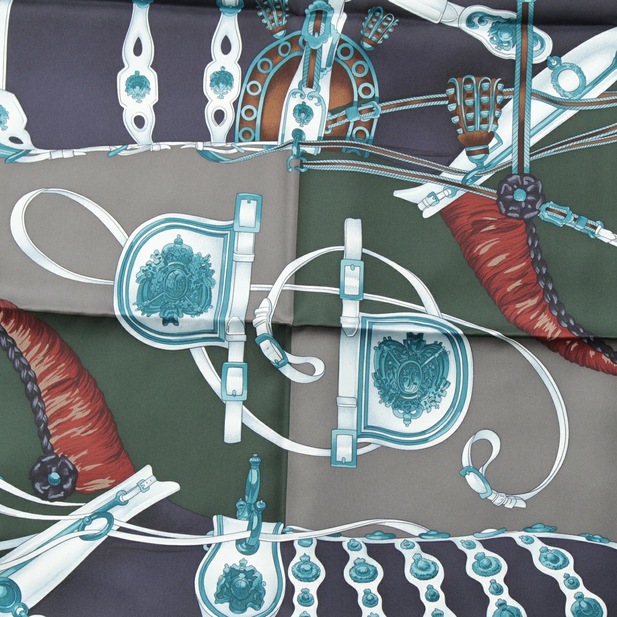 エルメス カレ90 シルク HARNAIS DE COUR 宮廷の馬具 スカーフ エンブレム ブラック×ブルー