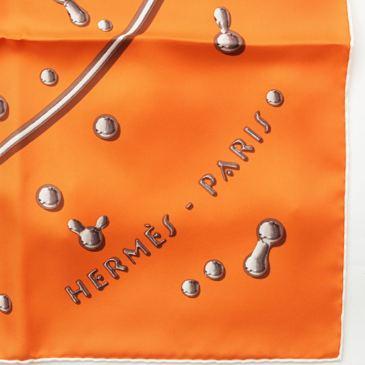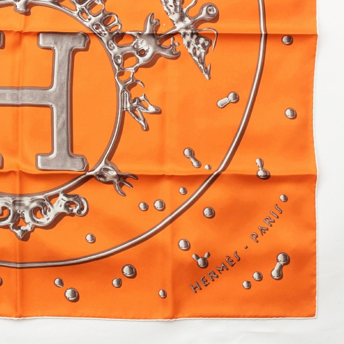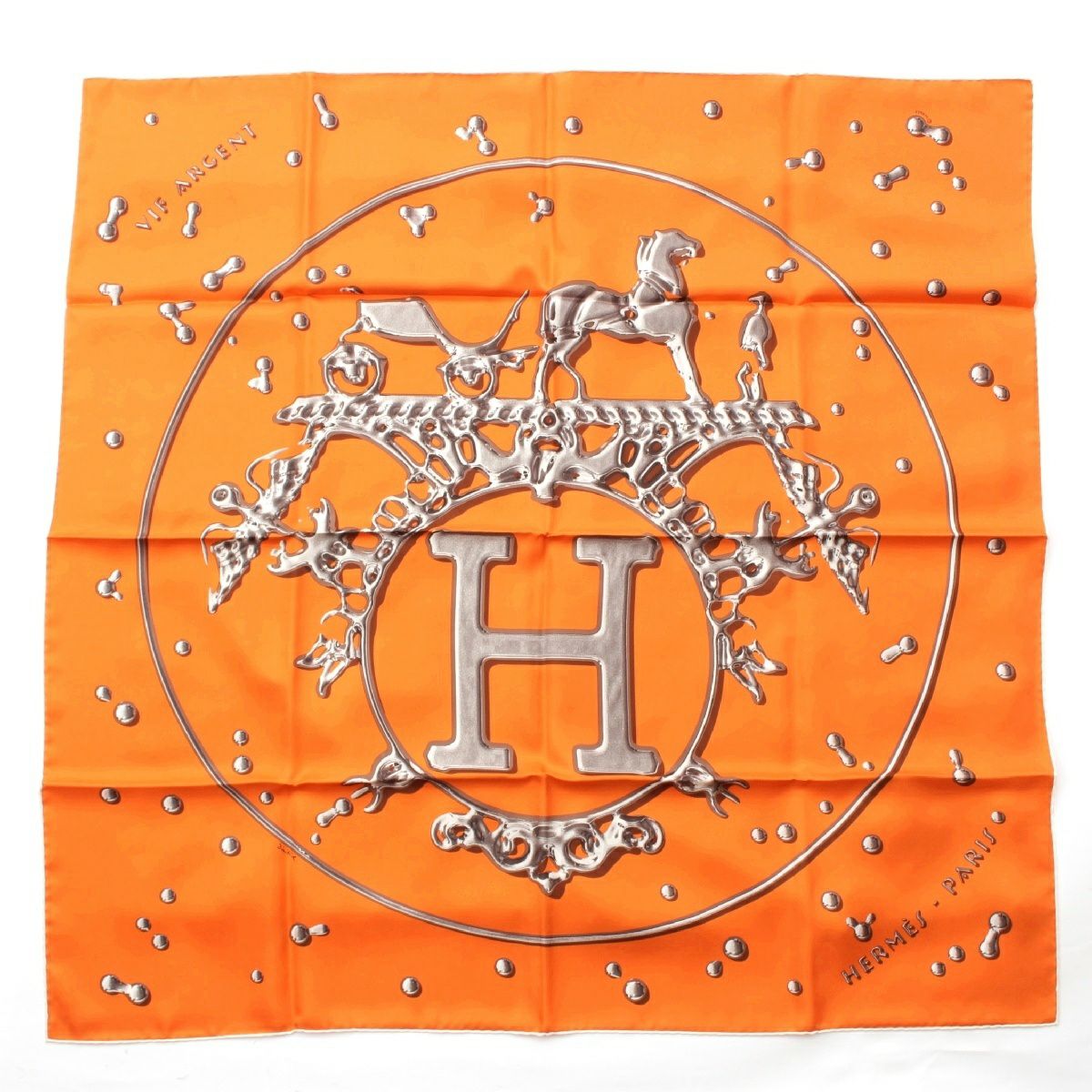 エルメス カレ90 シルク VIF ARGENT 銀の雫 スカーフ Hモチーフ オレンジ