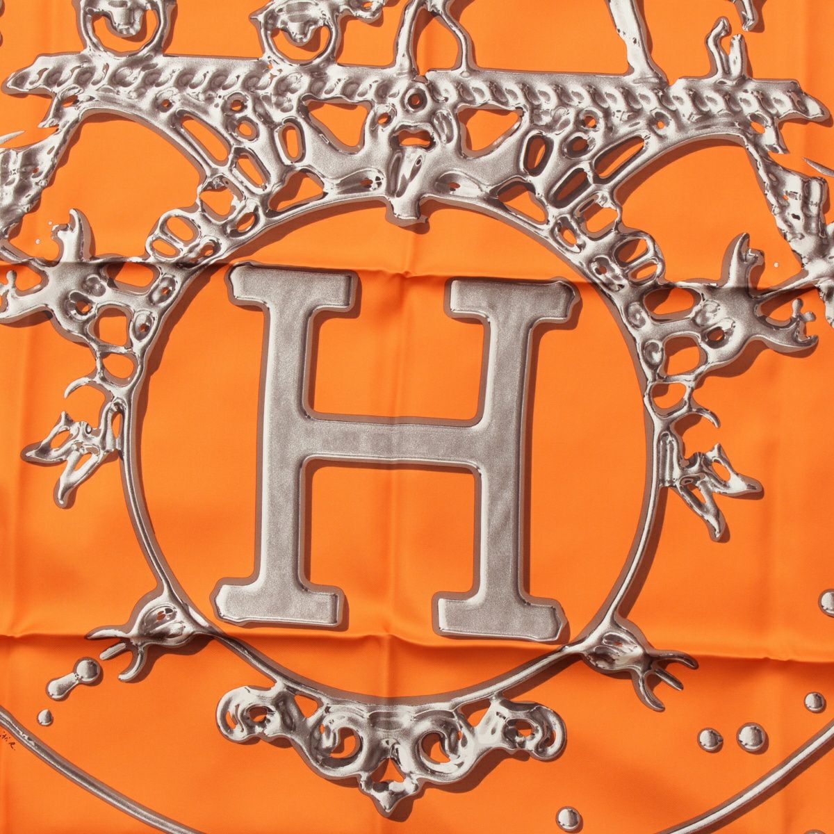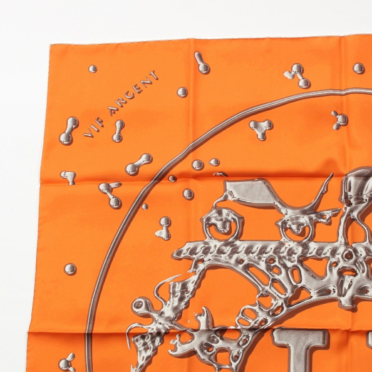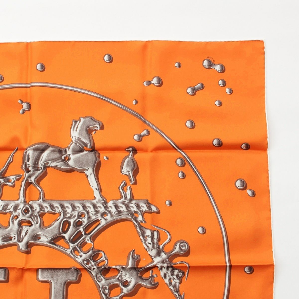 エルメス カレ90 シルク VIF ARGENT 銀の雫 スカーフ Hモチーフ オレンジ