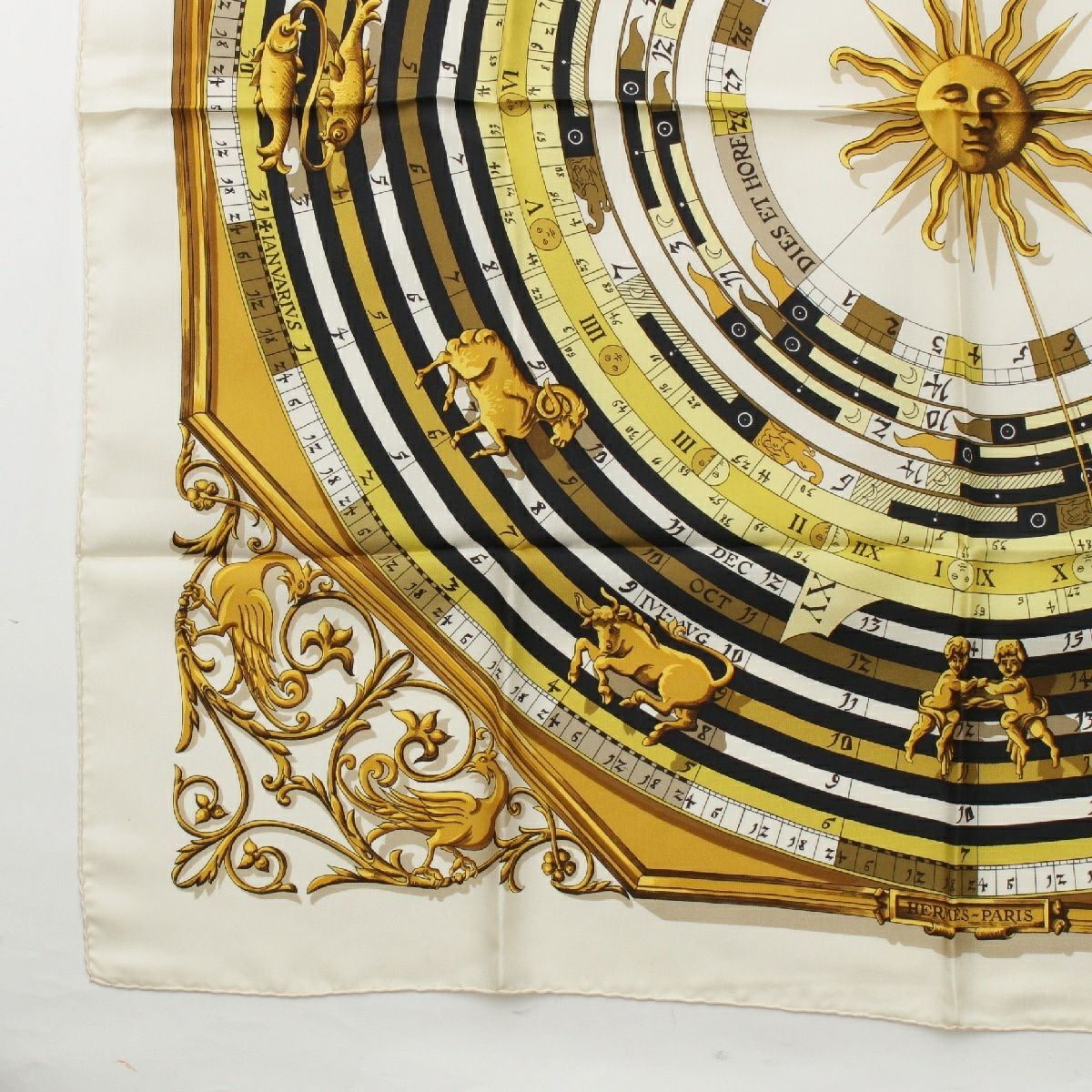エルメス シルク カレ90 DIES ET HORE 占星術 スカーフ ホワイト×イエロー