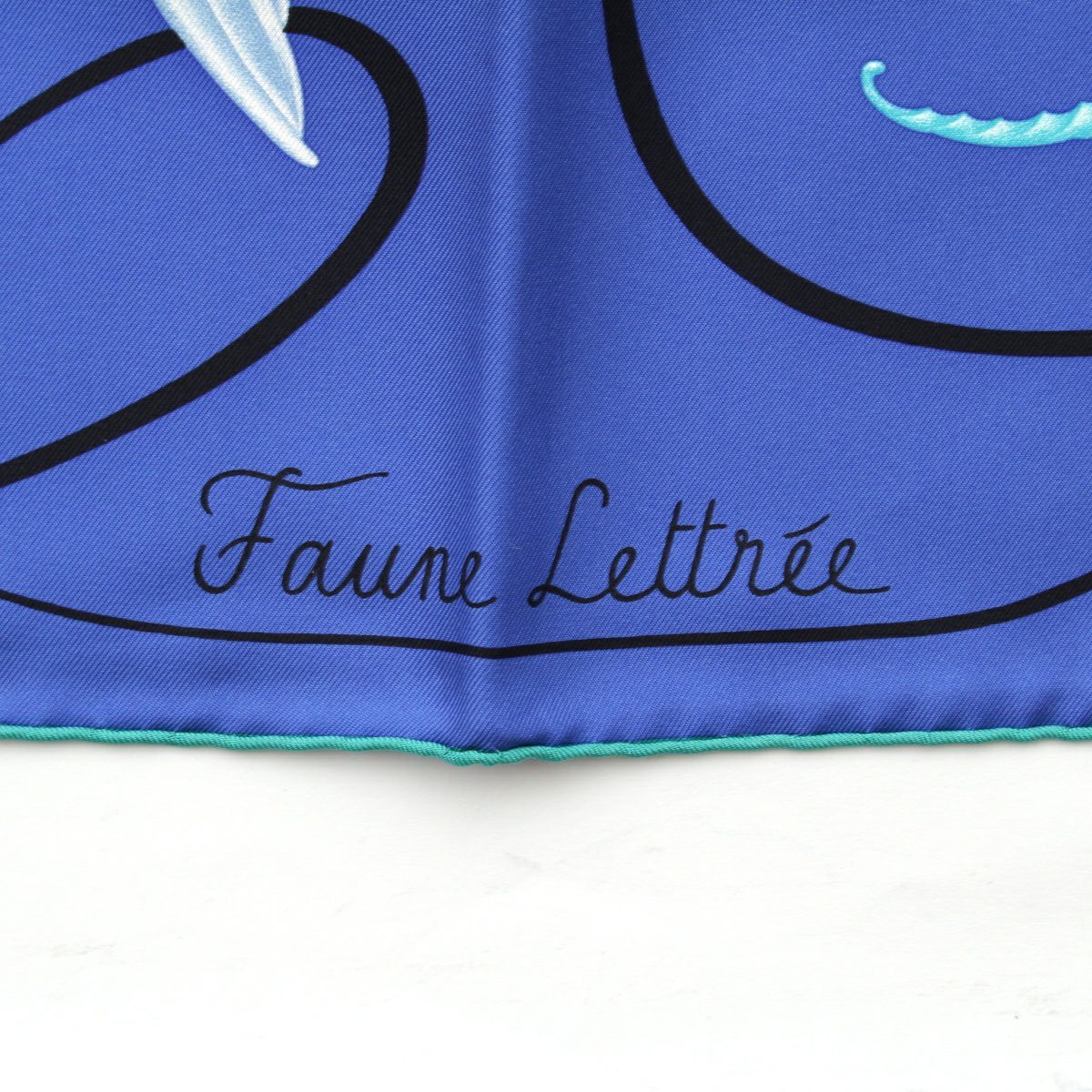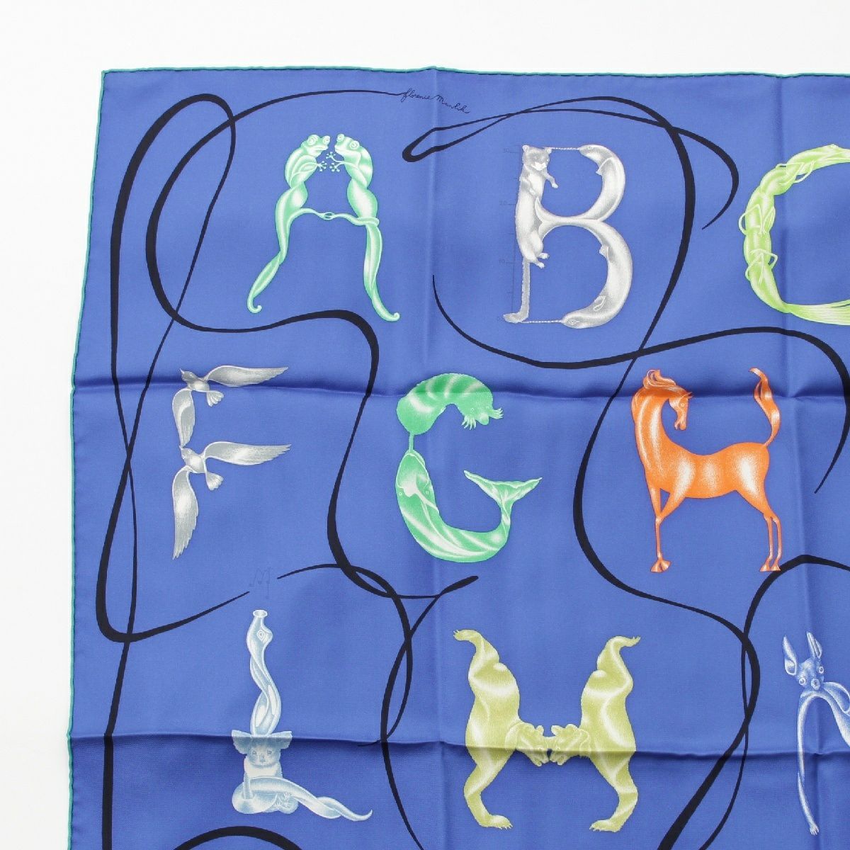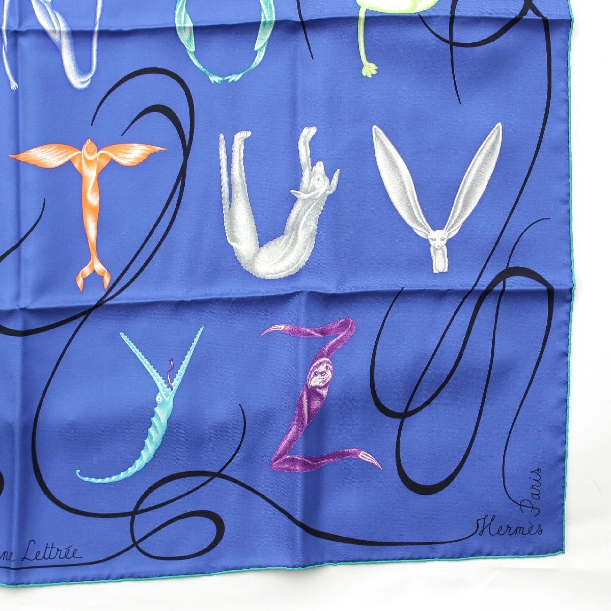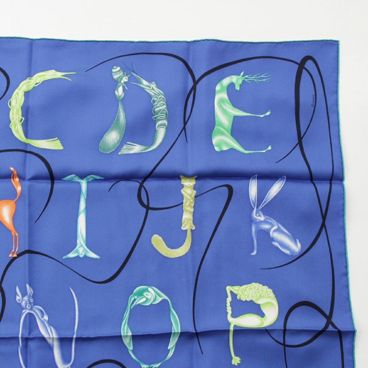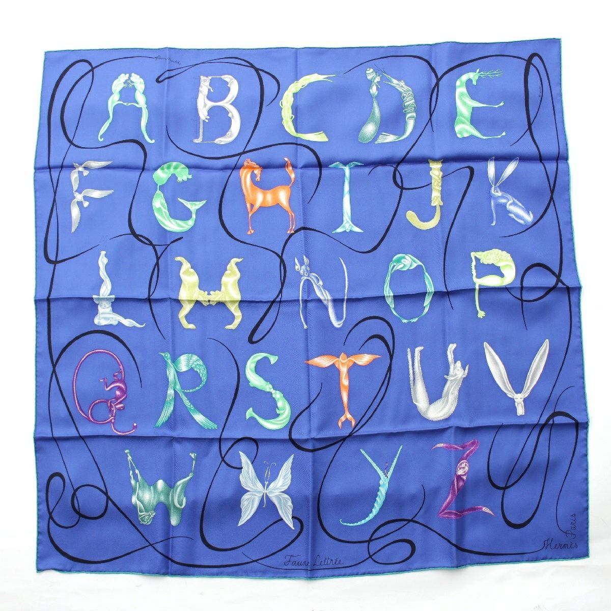 エルメス カレ90 シルク Faune Lettree アルファベットの動物誌 スカーフ アニマル 生物 ブルー
