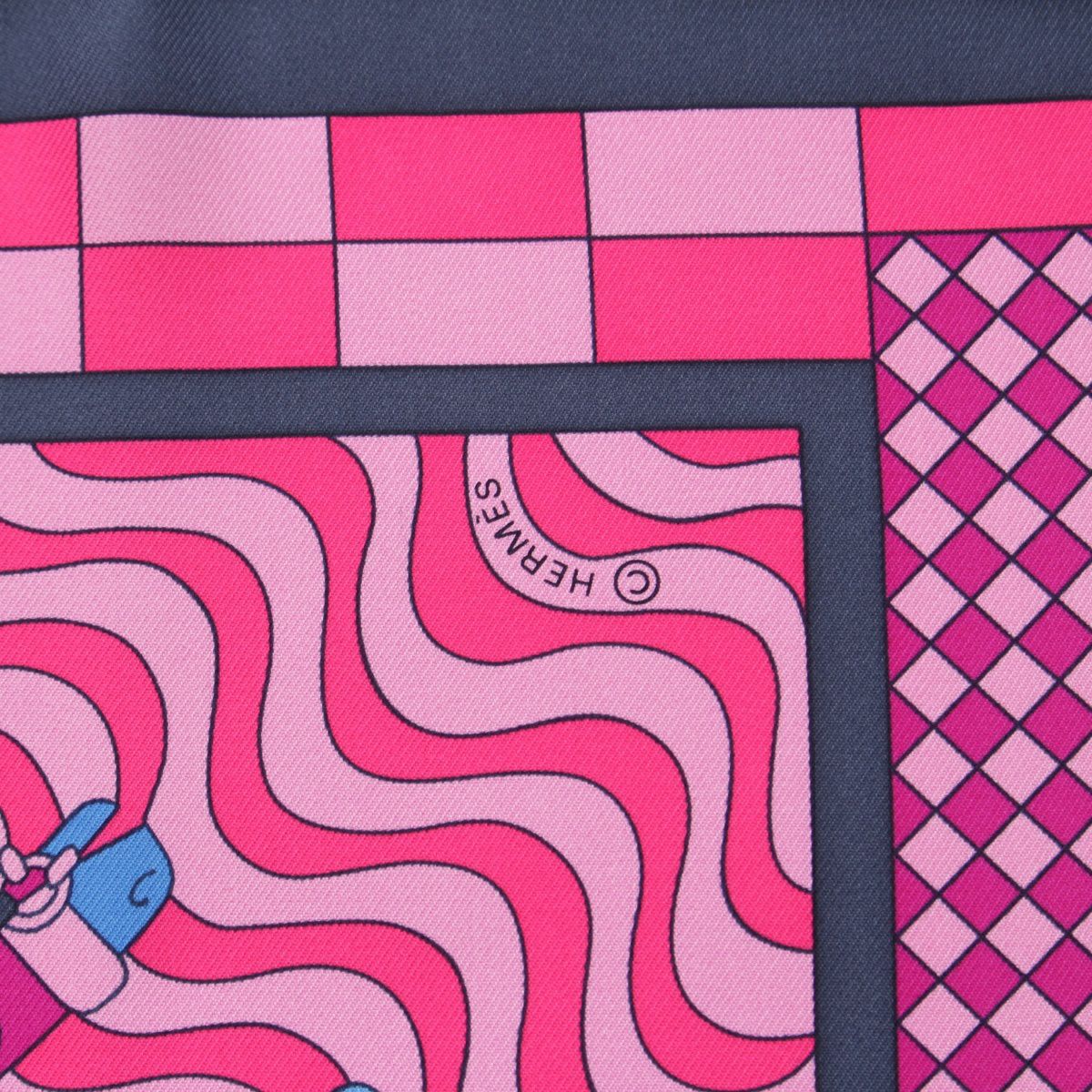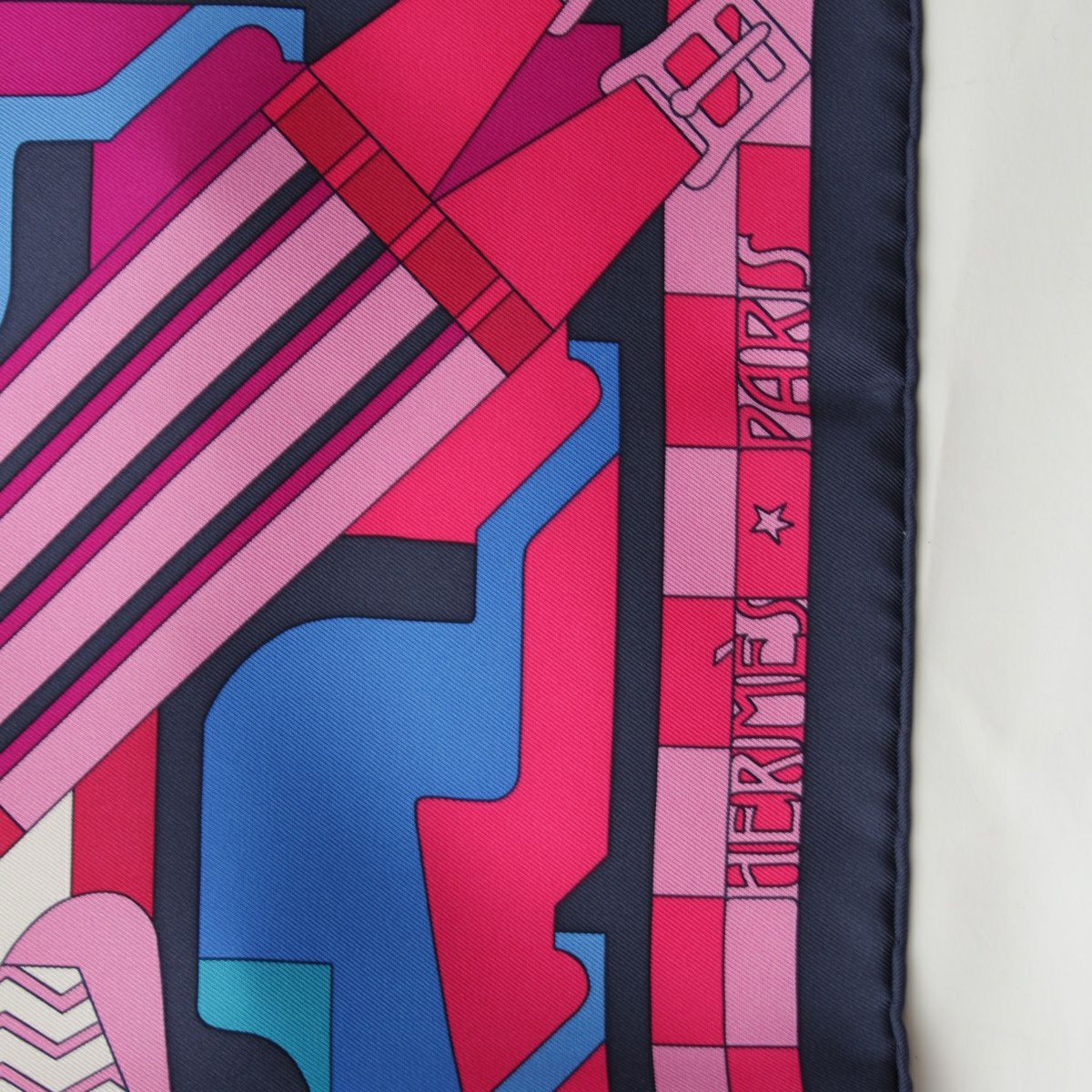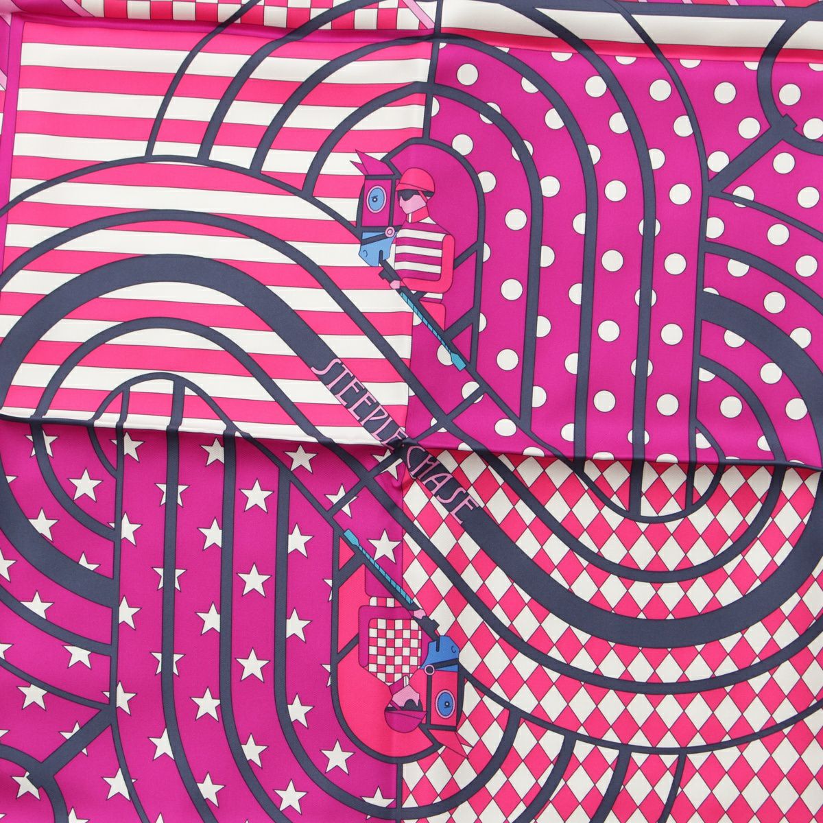 エルメス シルク カレ90 STEEPLE CHASE スティープル チェイス スカーフ ピンク×ネイビー