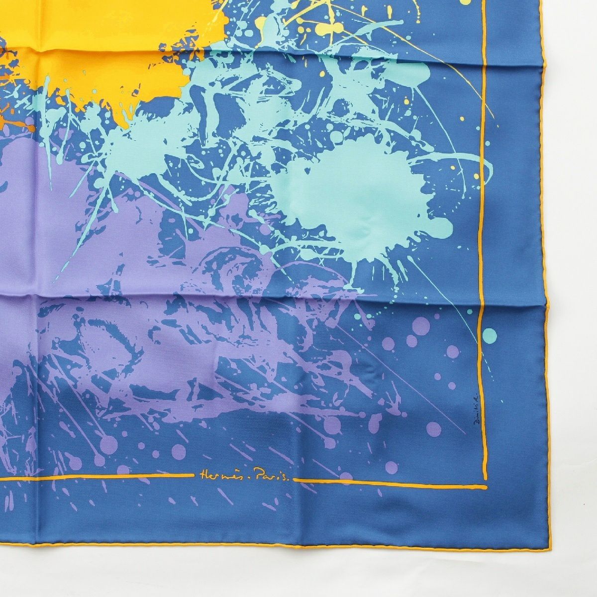 エルメス カレ90 シルク Cheval surprise 思いがけない馬 スカーフ ペイント柄 ブルー