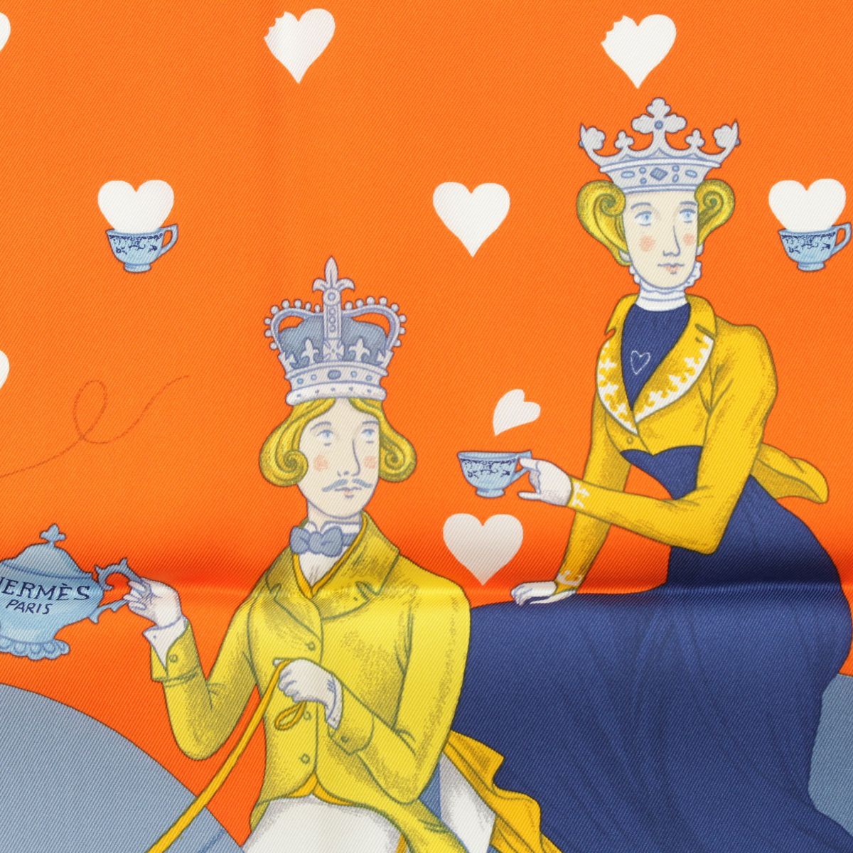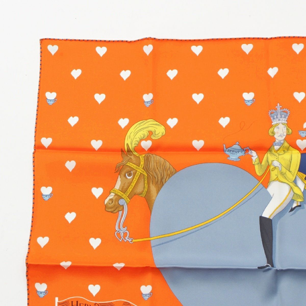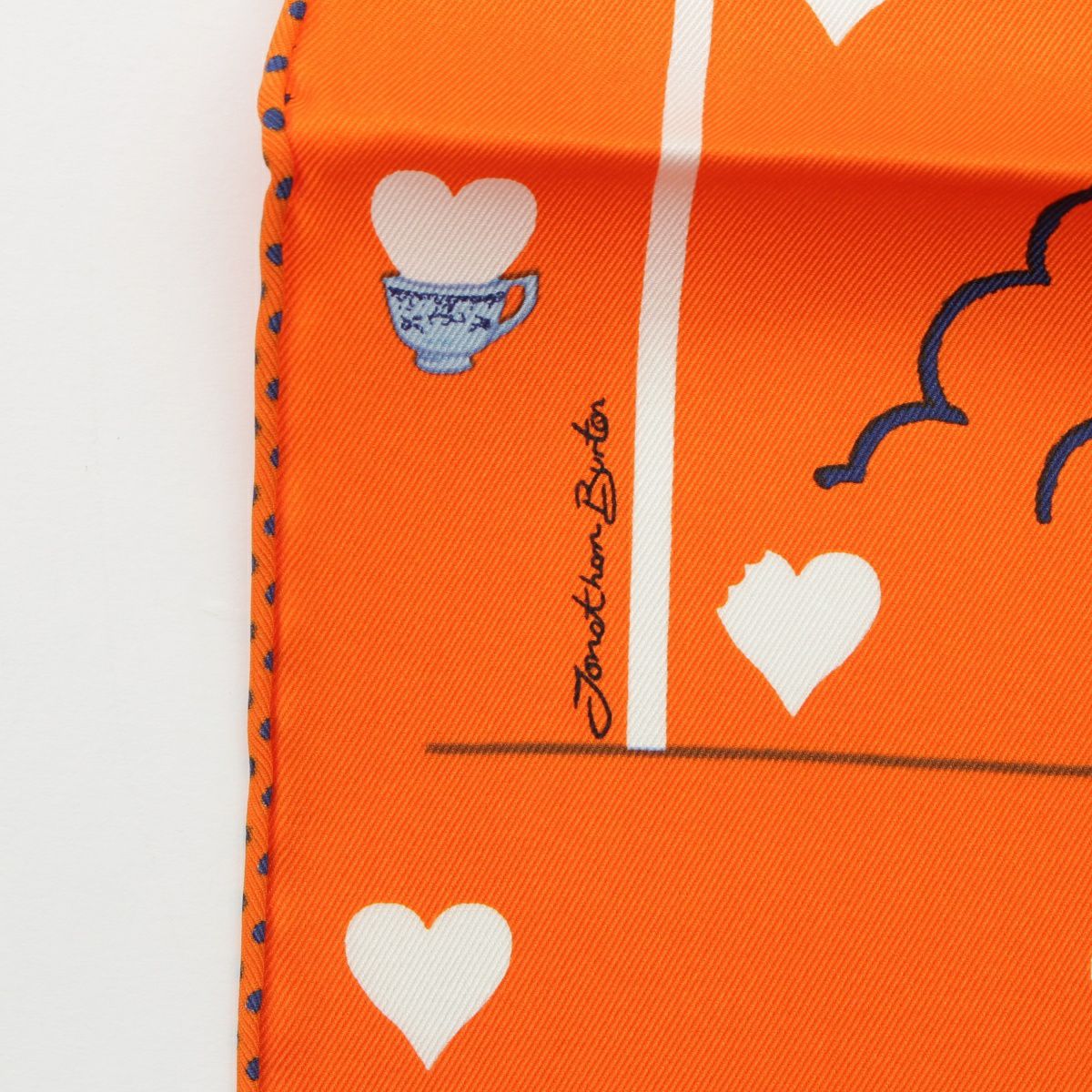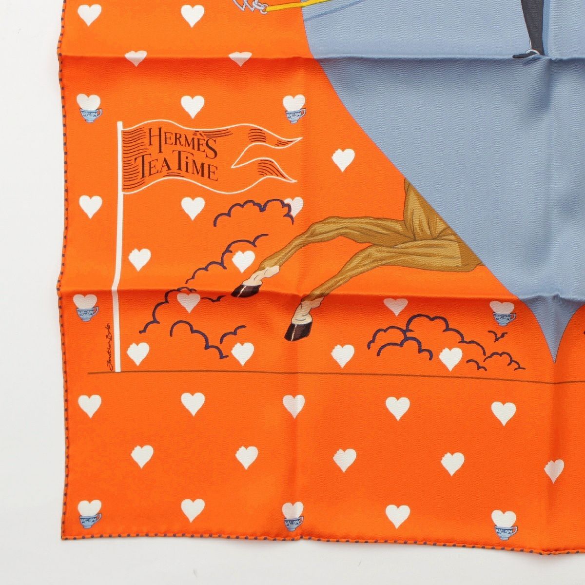 エルメス シルク カレ70 Tea Time ティータイム ハート スカーフ オレンジ