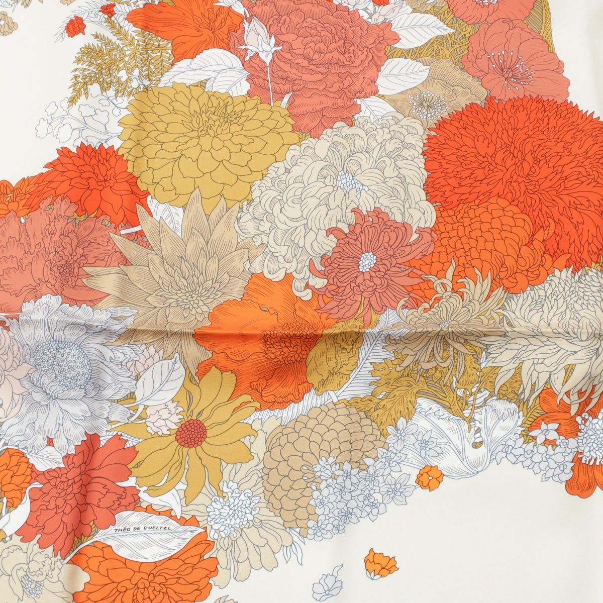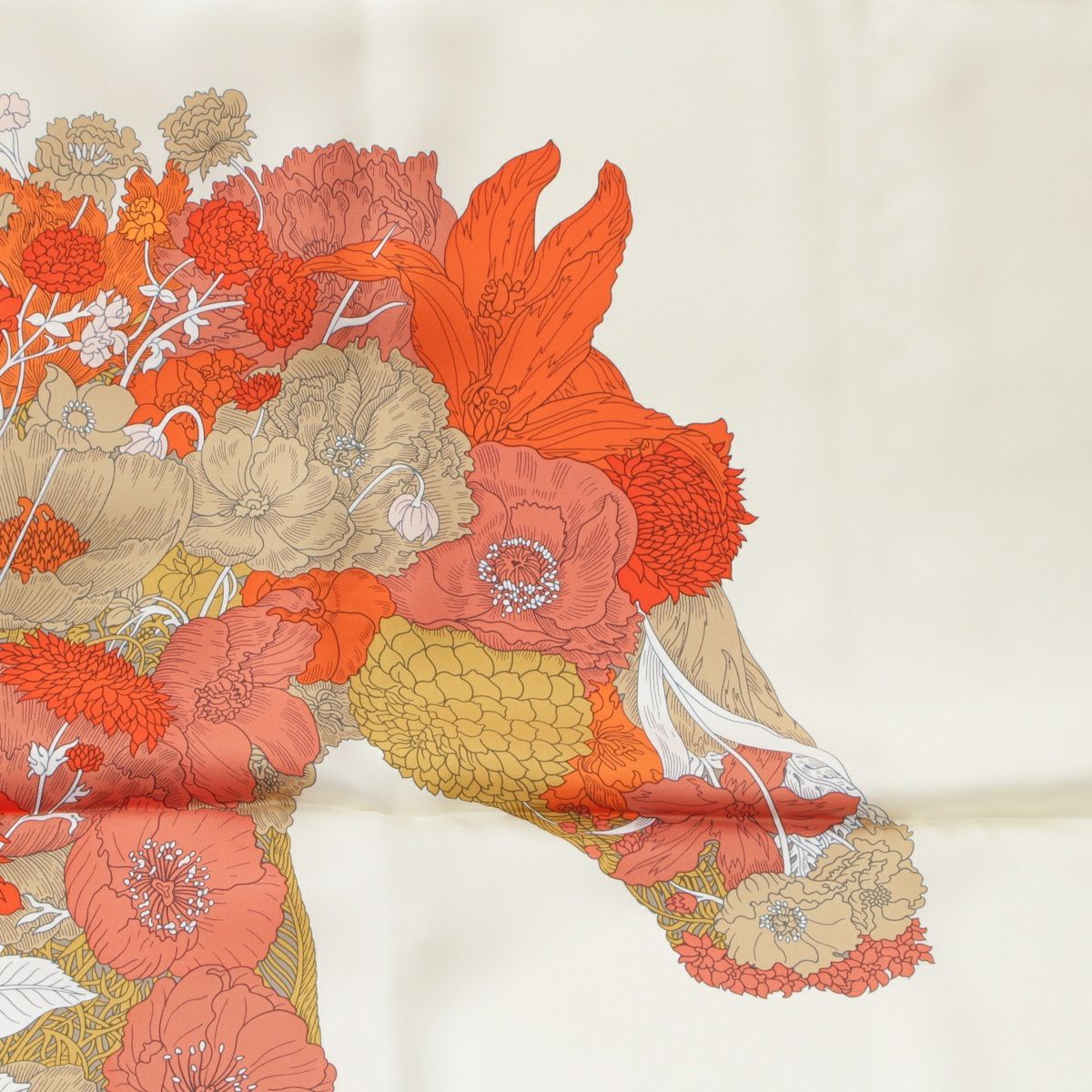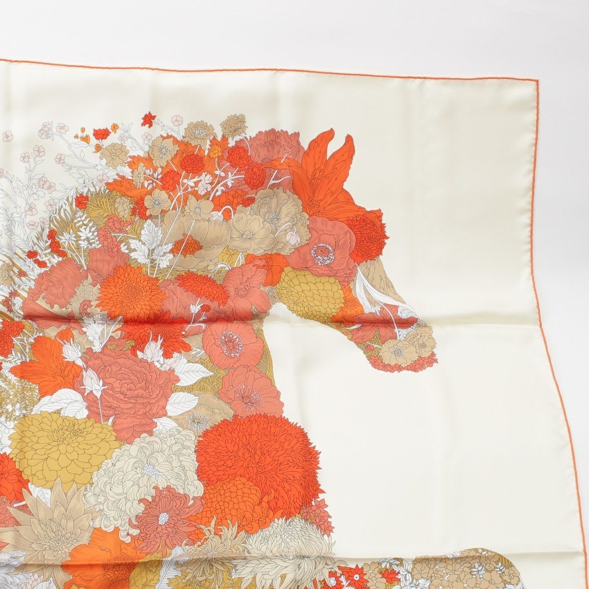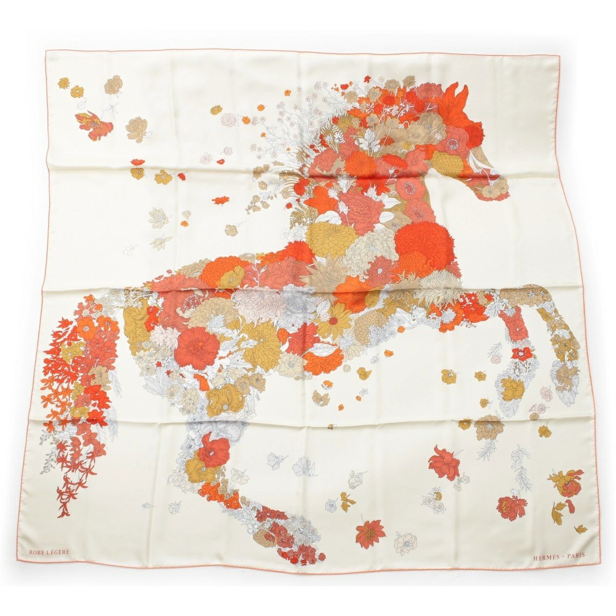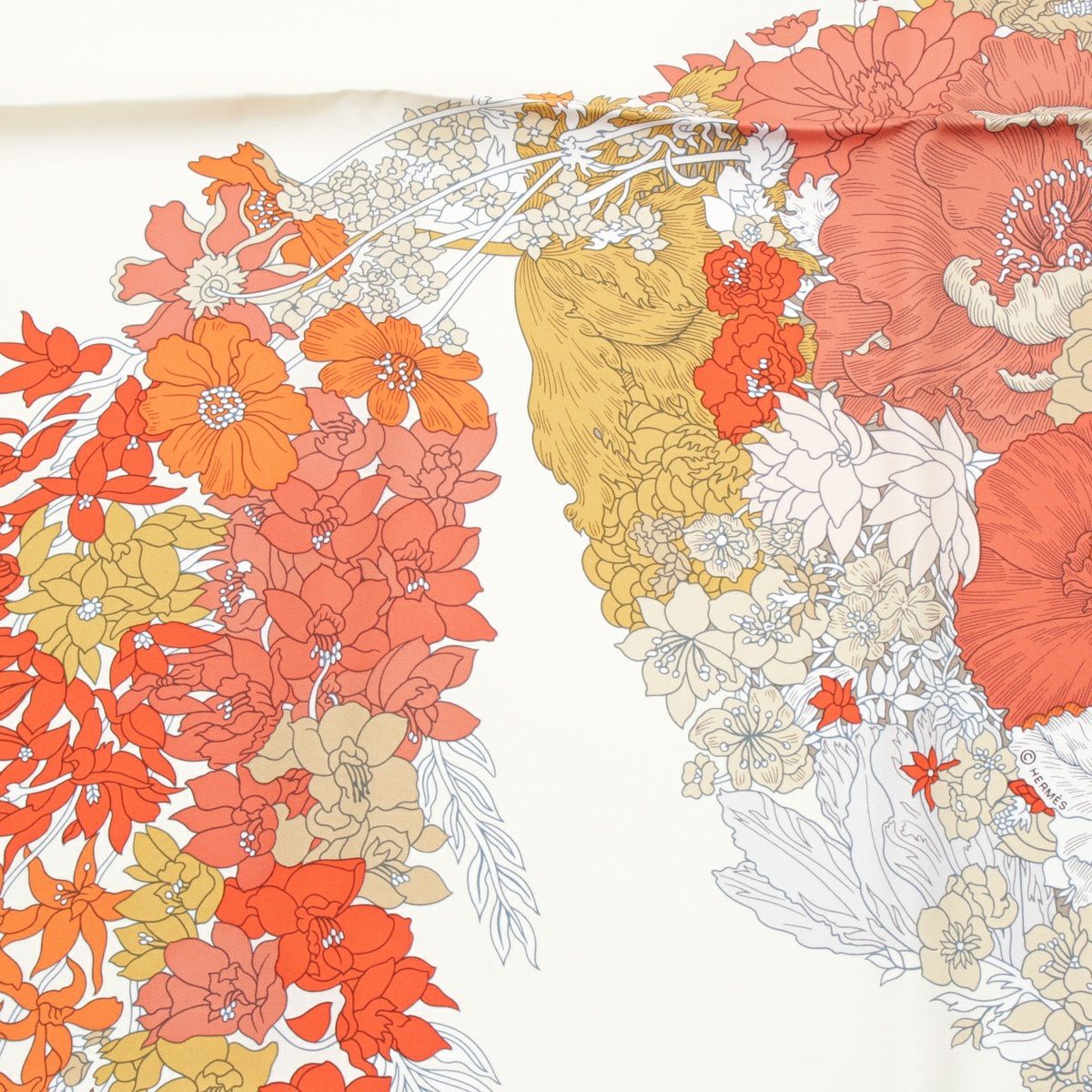 エルメス 24SS シルク カレ140 Robe Legere ローブ レジェール 大判 スカーフ クレーム/バーミリオン/ベージュ