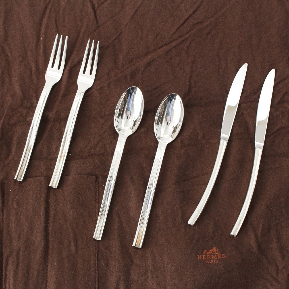 エルメス オンド スプーン×2 フォーク×2 ナイフ×2 カトラリー セット シルバー