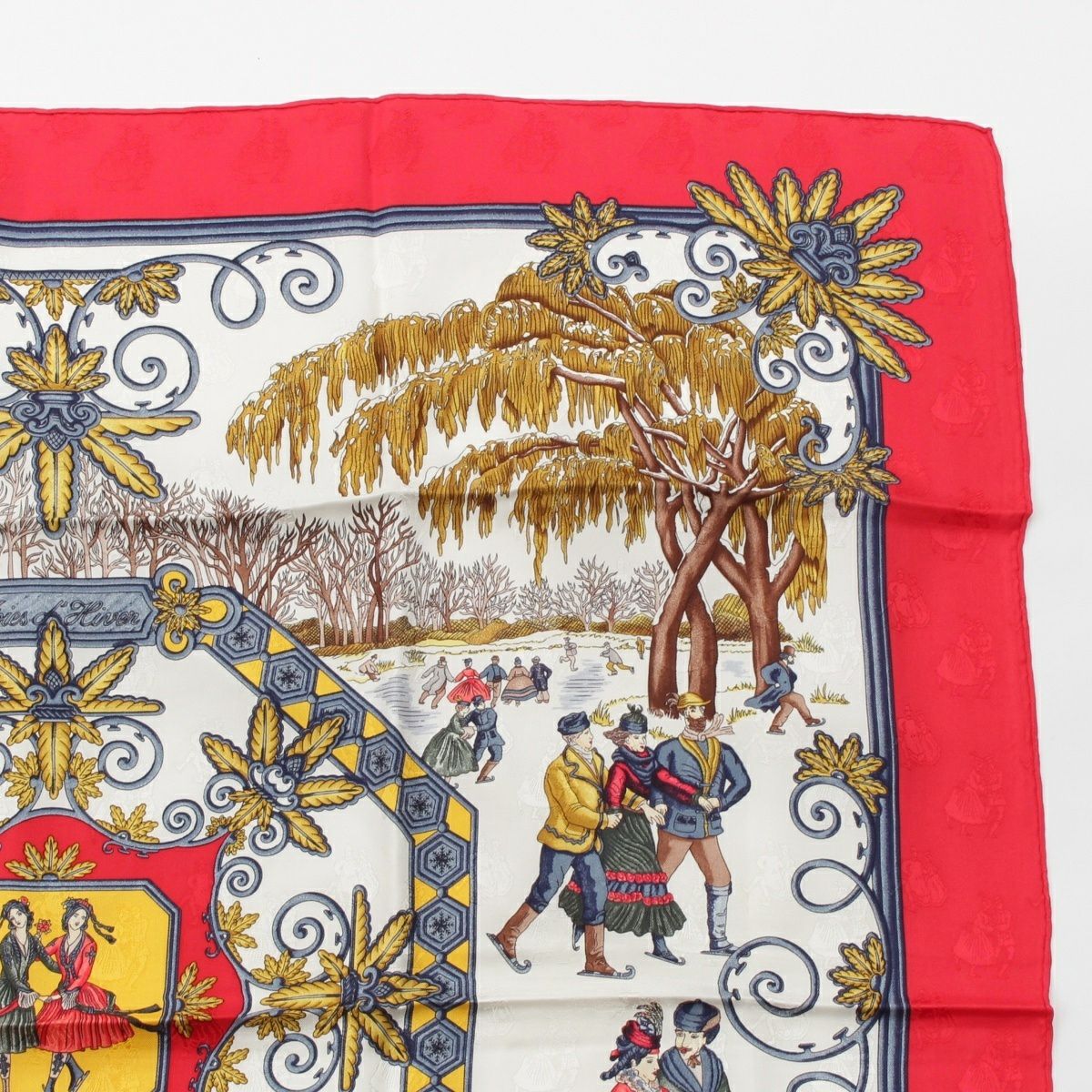 エルメス シルク カレ90 Joies d’Hiver 冬の愉しみ スカーフ レッド