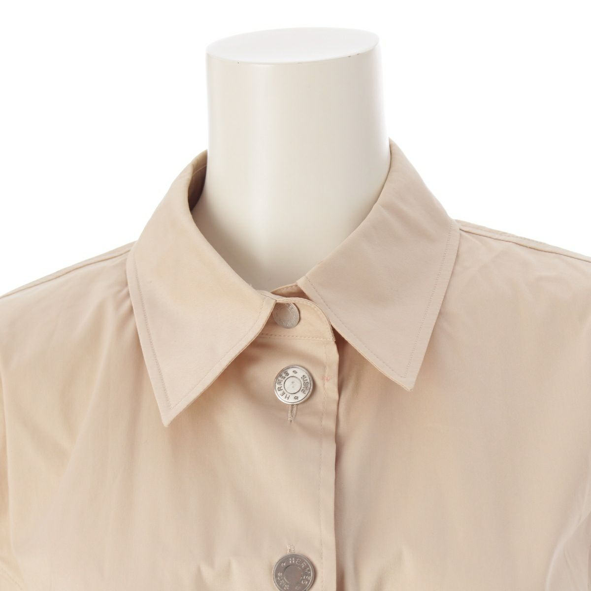 エルメス コットン ヴィンテージ セリエボタン ビッグボタンデザイン 半袖シャツ トップス ベージュ オフホワイト系 38