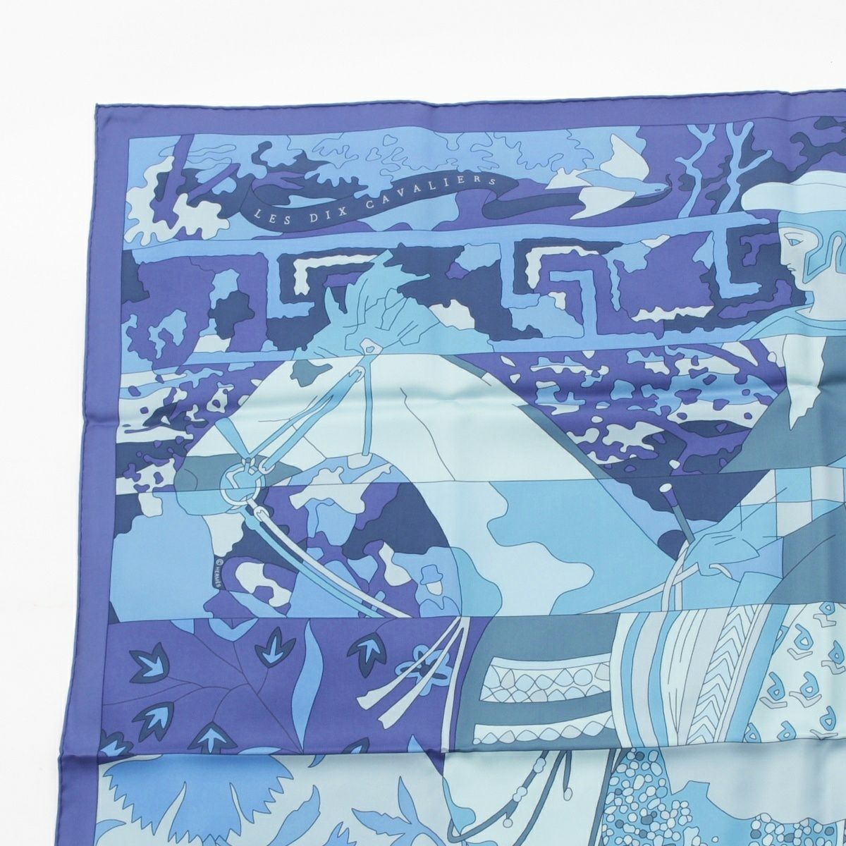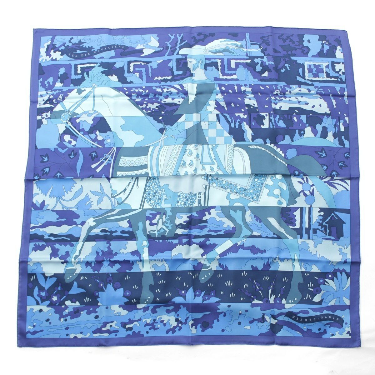 エルメス シルク カレ90 LES DIX CAVALIERS 10人の騎士 スカーフ ブルー