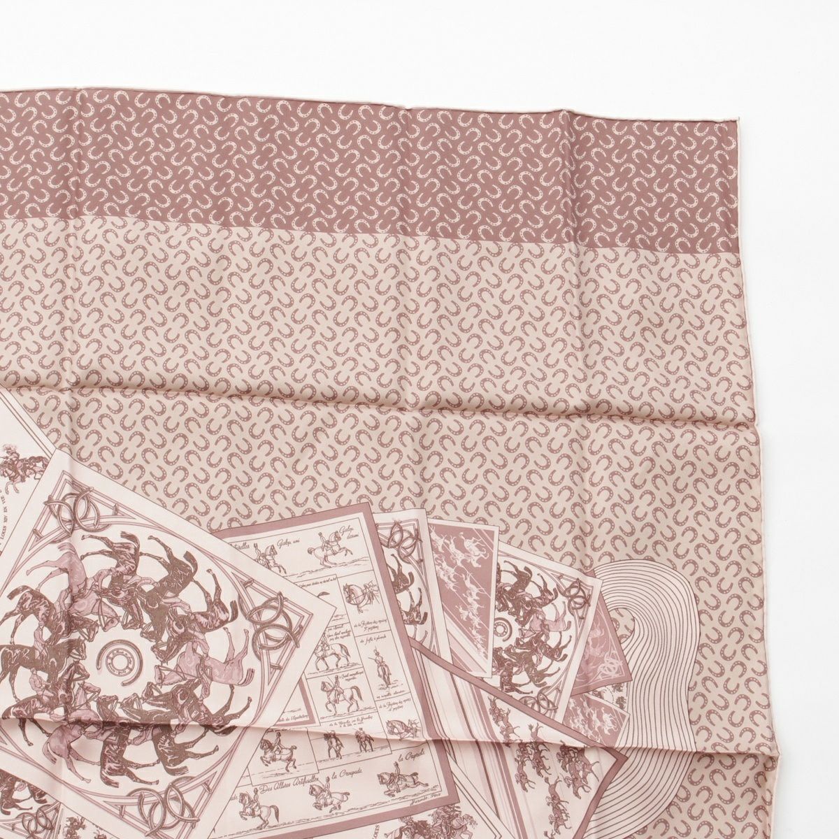 エルメス カレ90 A Cheval sur mon Carre カレの馬に乗って シルク スカーフ ピンクベージュ