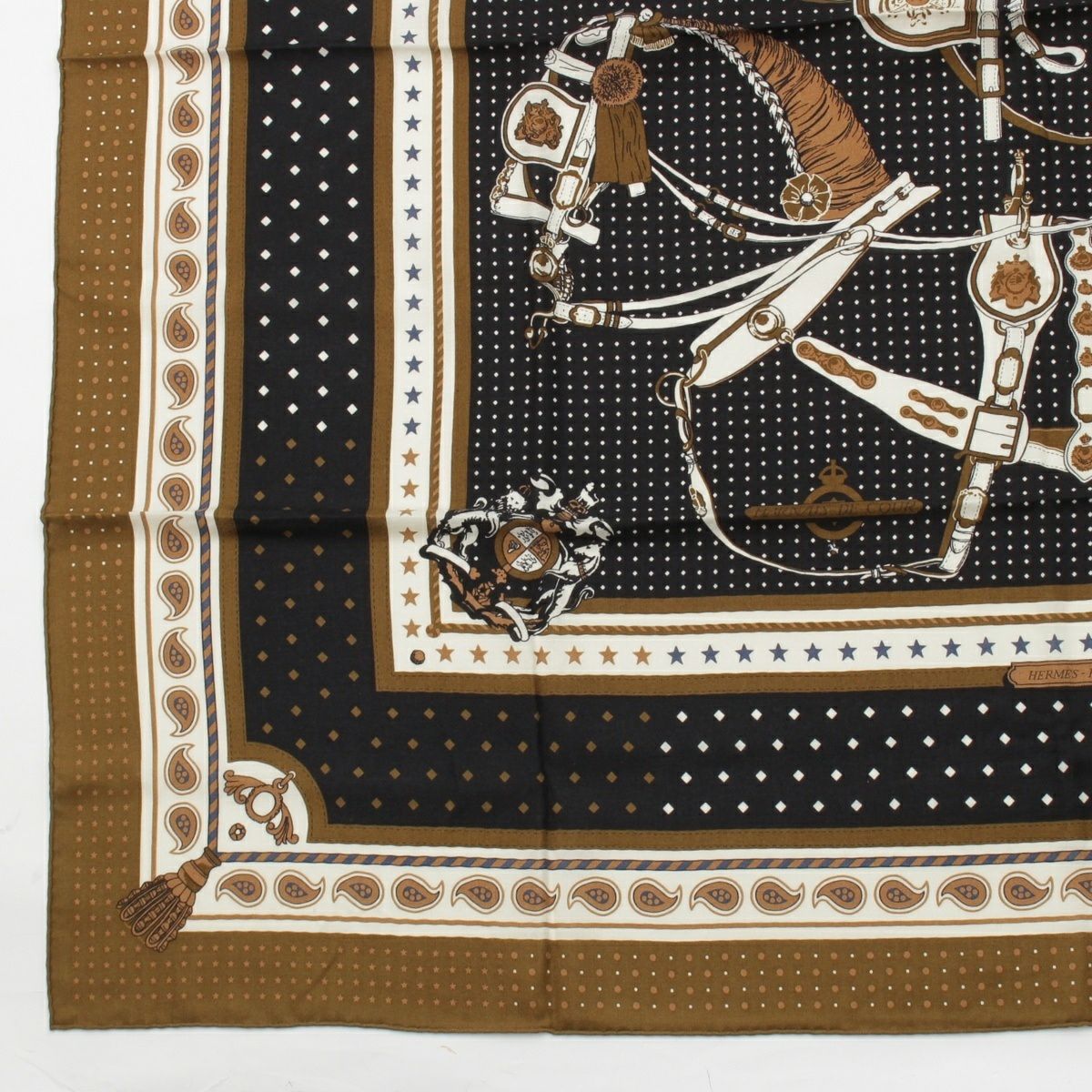 エルメス カシミヤ×シルク カシシル カレジェアン Harnais de Cour Bandana ストール ノワゼット/グリペール/グリスパール