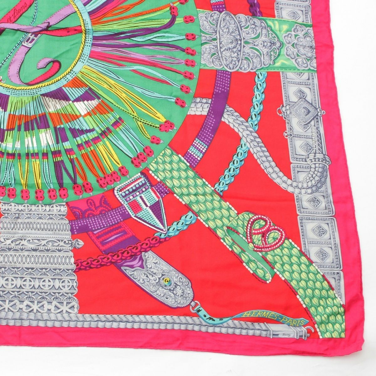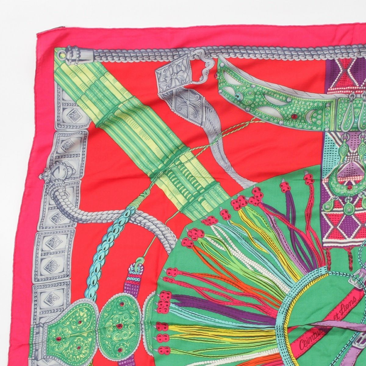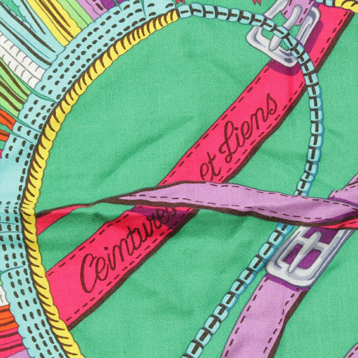 エルメス カレ140 カレジェアン Ceintures et Liens ベルトと紐 カシミヤ シルク ストール ピンク×グリーン