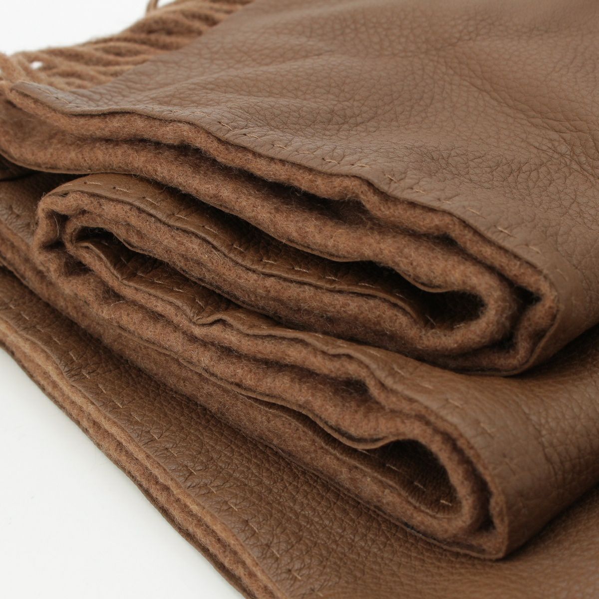 エルメス 鹿革 ディアスキン×カシミヤ ゴルチエ期 ダブルフェイス フリンジ ロング マフラー ブラウン