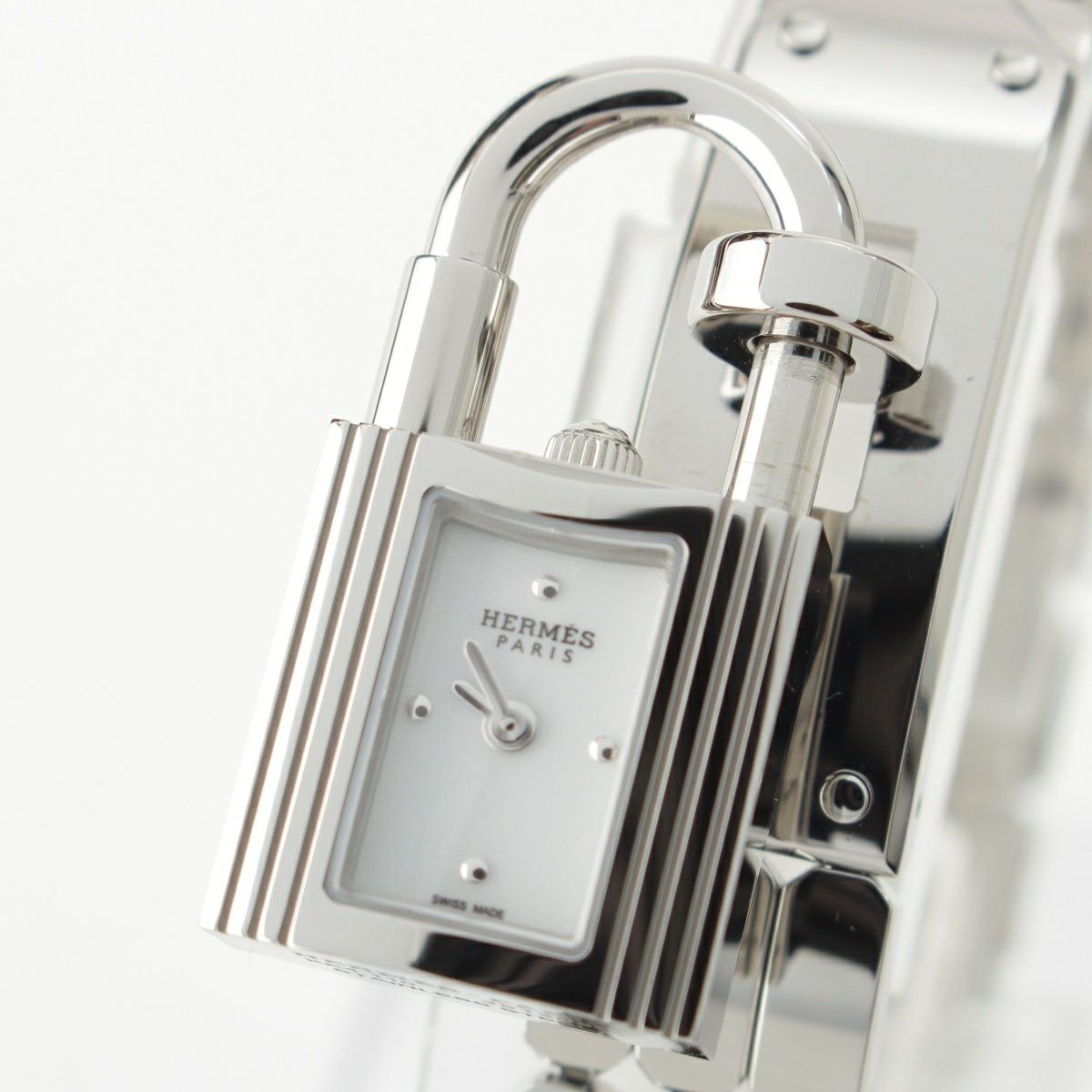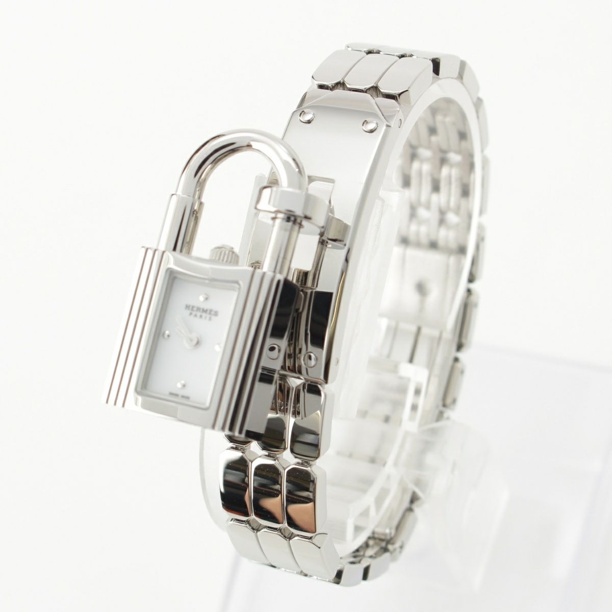 エルメス ステンレススチール SS QZ 白文字盤 クロシェット付属 腕時計 クオーツ ホワイト文字盤 KE4.110 シルバー