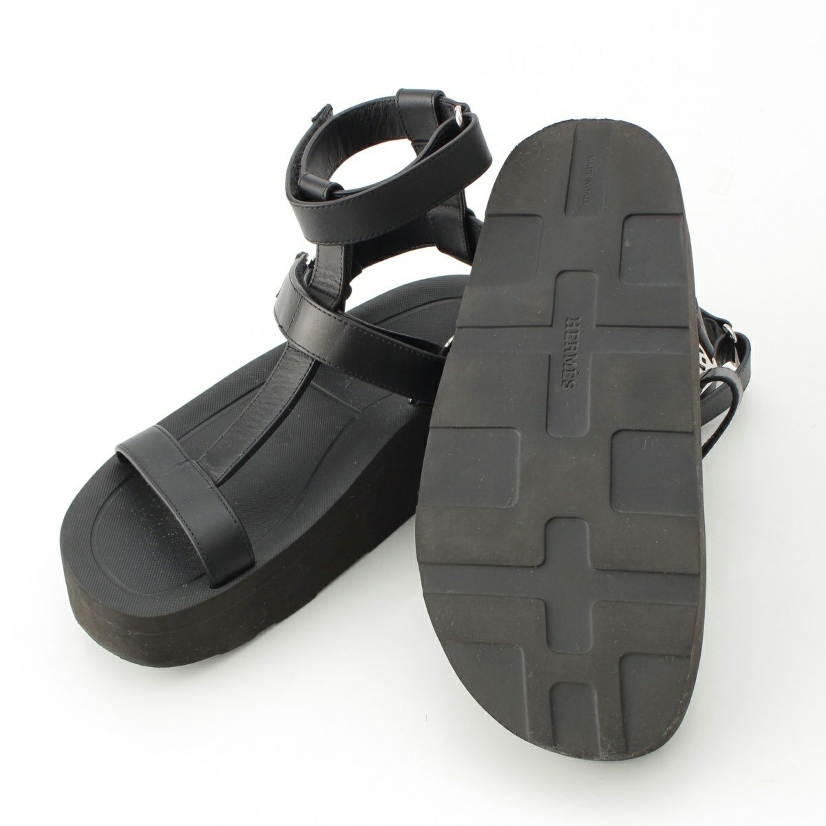 エルメス エニド レザー アンクルストラップ サンダル シューズ ブラック 36