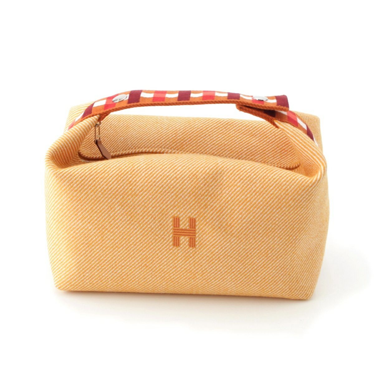エルメス ブリッド ア ブラック GM ウール 刺繍 ロゴ ハンドバッグ オレンジ