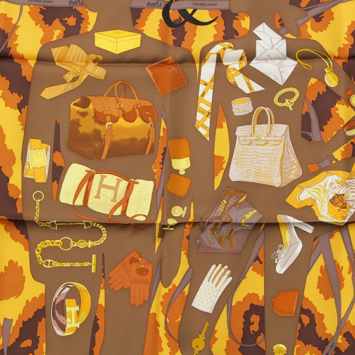 エルメス カレ90 MONSIEUR ET MADAME ムッシュ&マダム シルク スカーフ イエロー