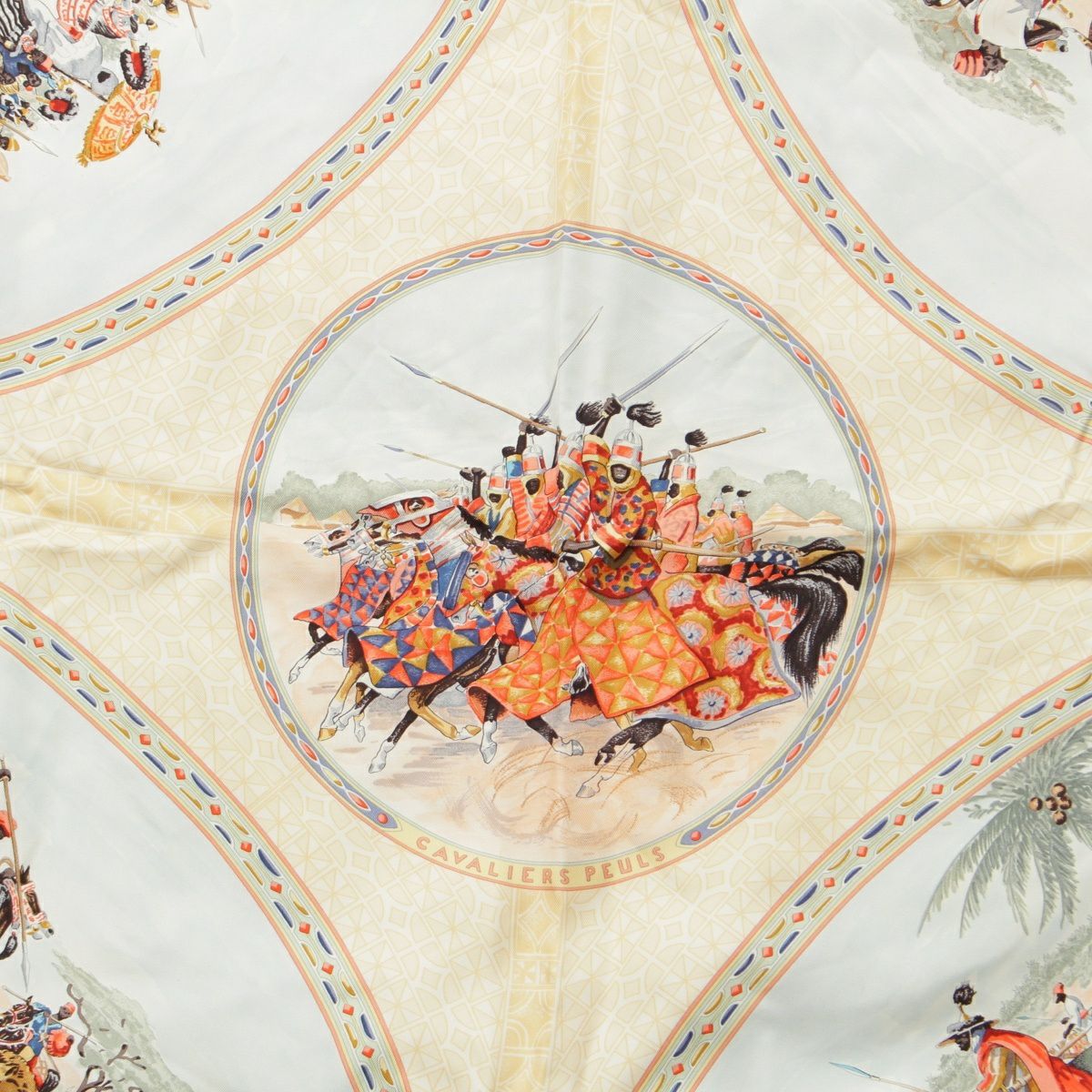 エルメス カレ90 CAVALIERS PEULS プール族の騎手 シルク スカーフ ブラック系 マルチカラー