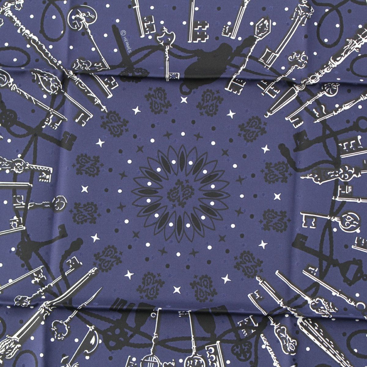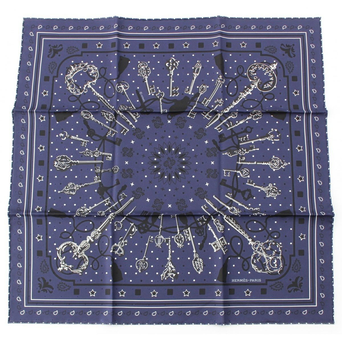エルメス カレ55 Les Cles Bandana レ・クレ・バンダナ シルク スカーフ ブルー ネイビー