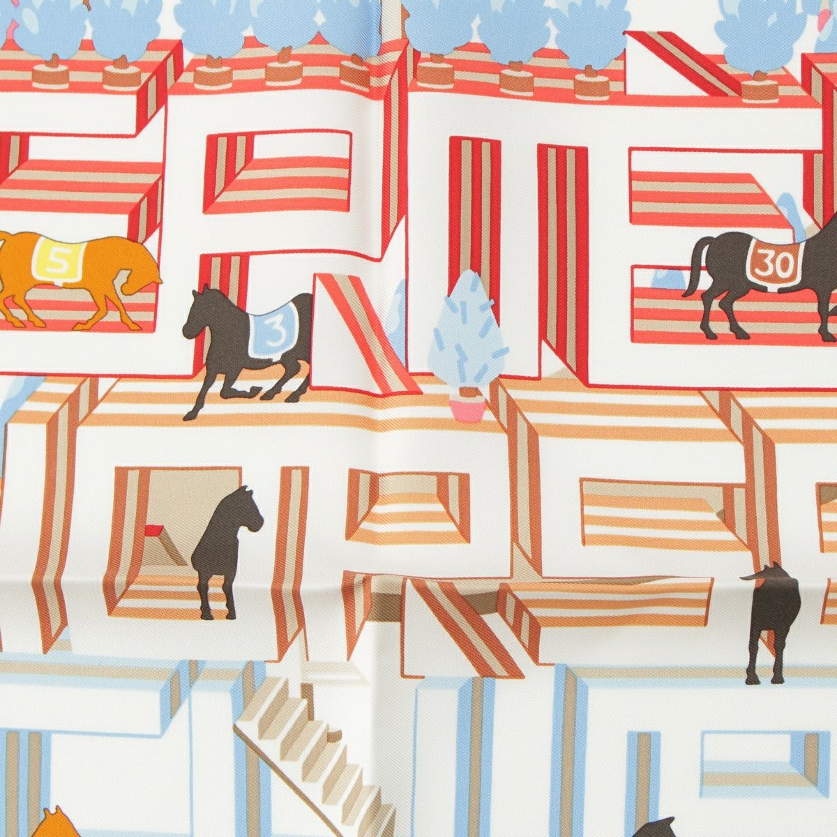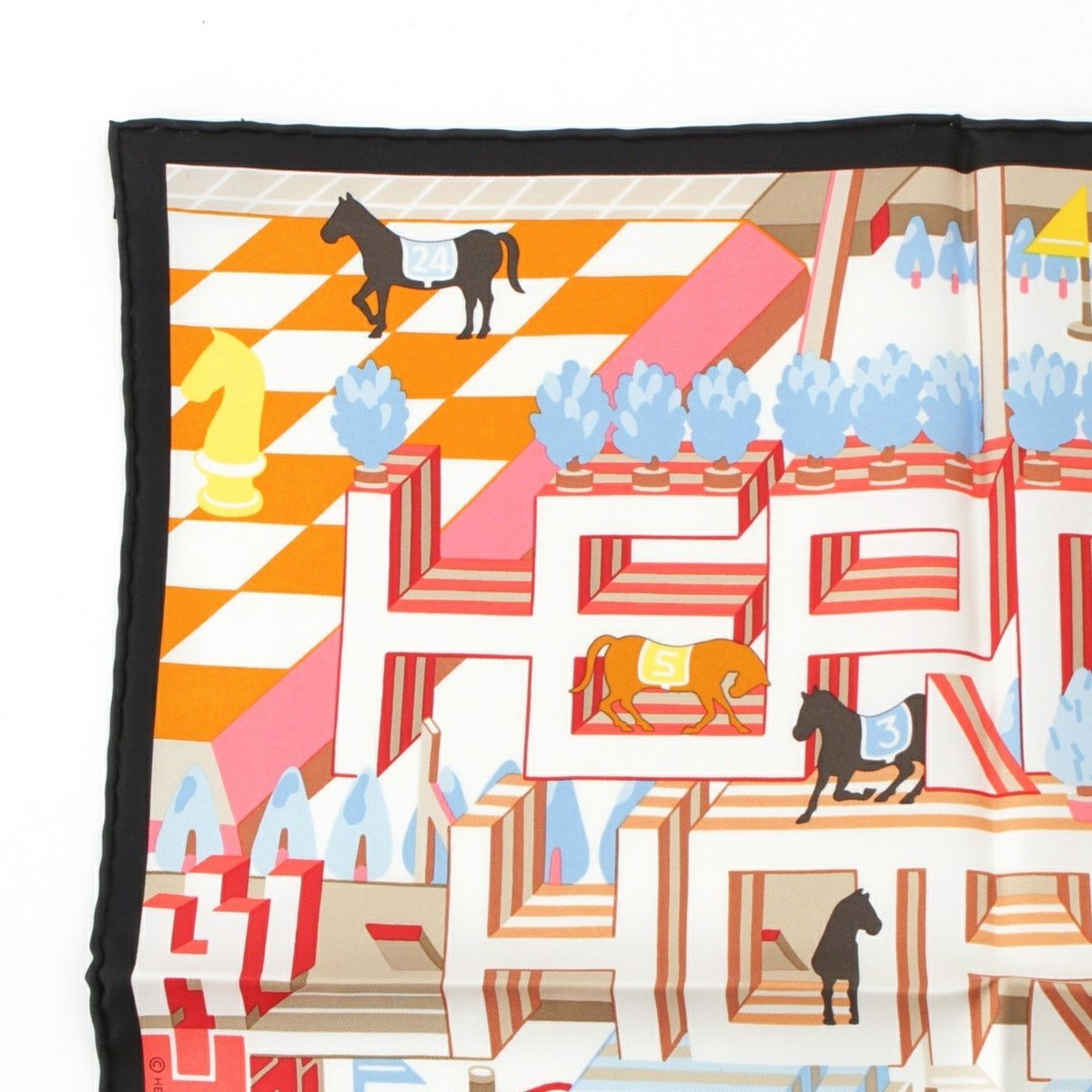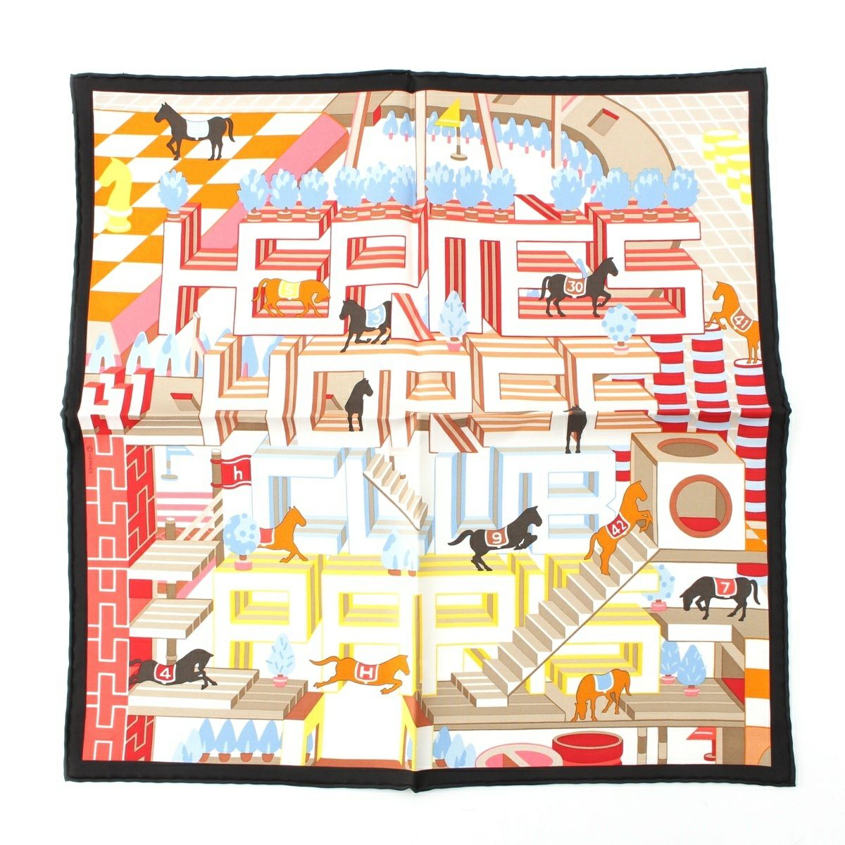 エルメス カレ45 ガヴロッシュ Horse Club Detail ホースクラブ シルク スカーフ マルチカラー