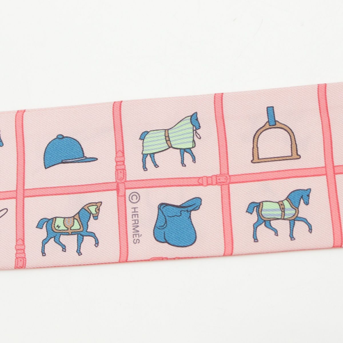 エルメス ツイリー Couvertures et Tenues de Jour シルク 馬着 スカーフ ピンク