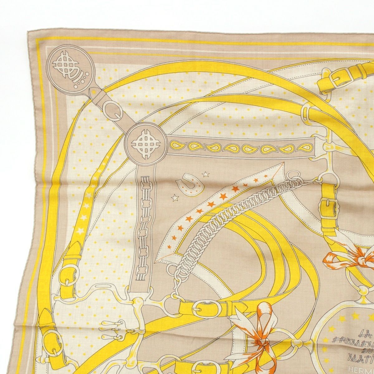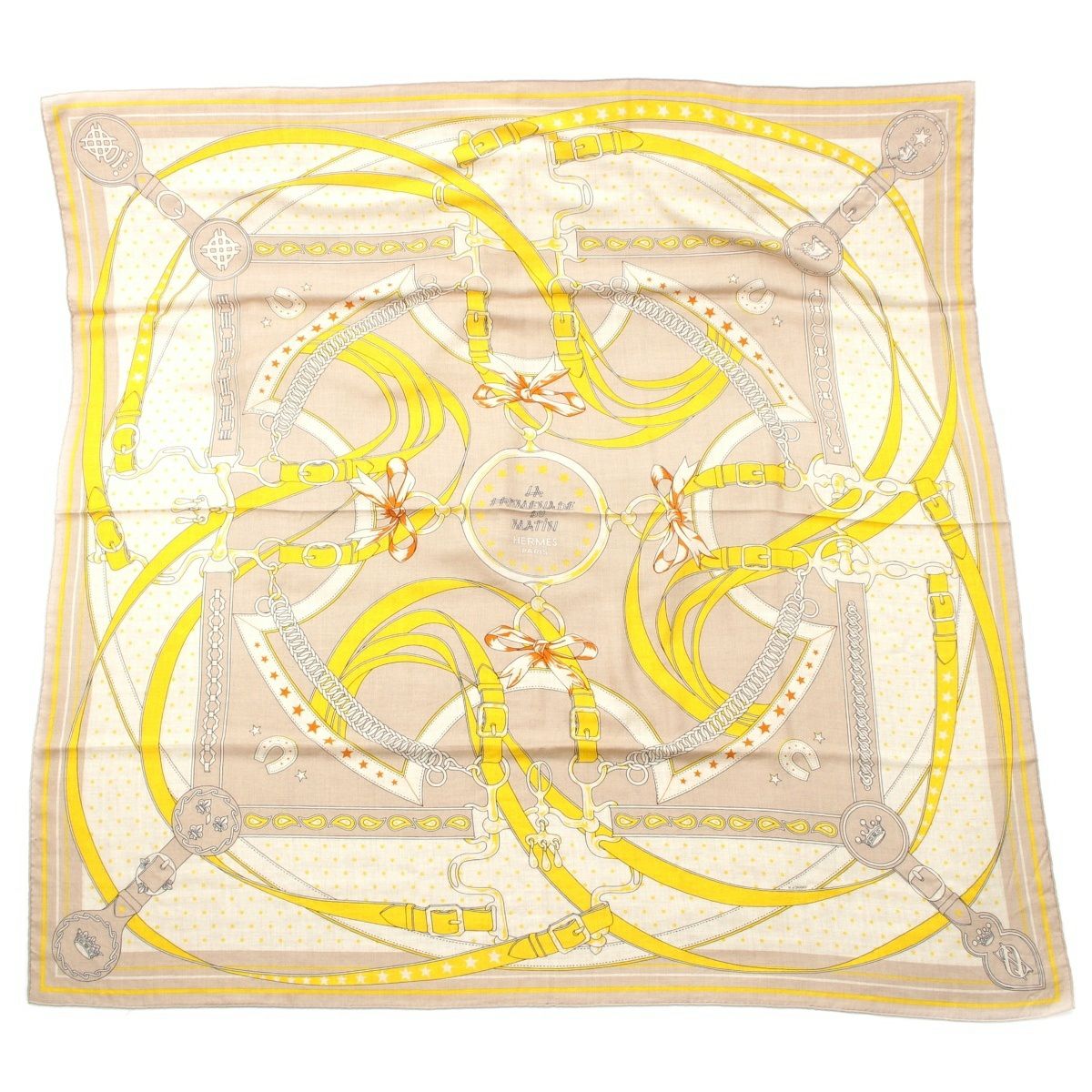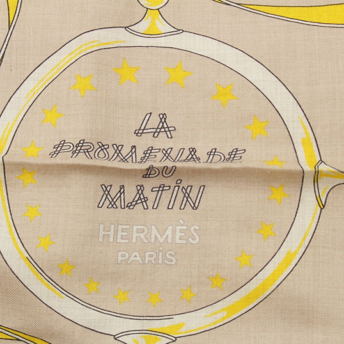 エルメス カレジェアン 140 LA PROMENADE DU MATIN 朝の散歩 カシミヤ×シルク スカーフ ストール イエロー系