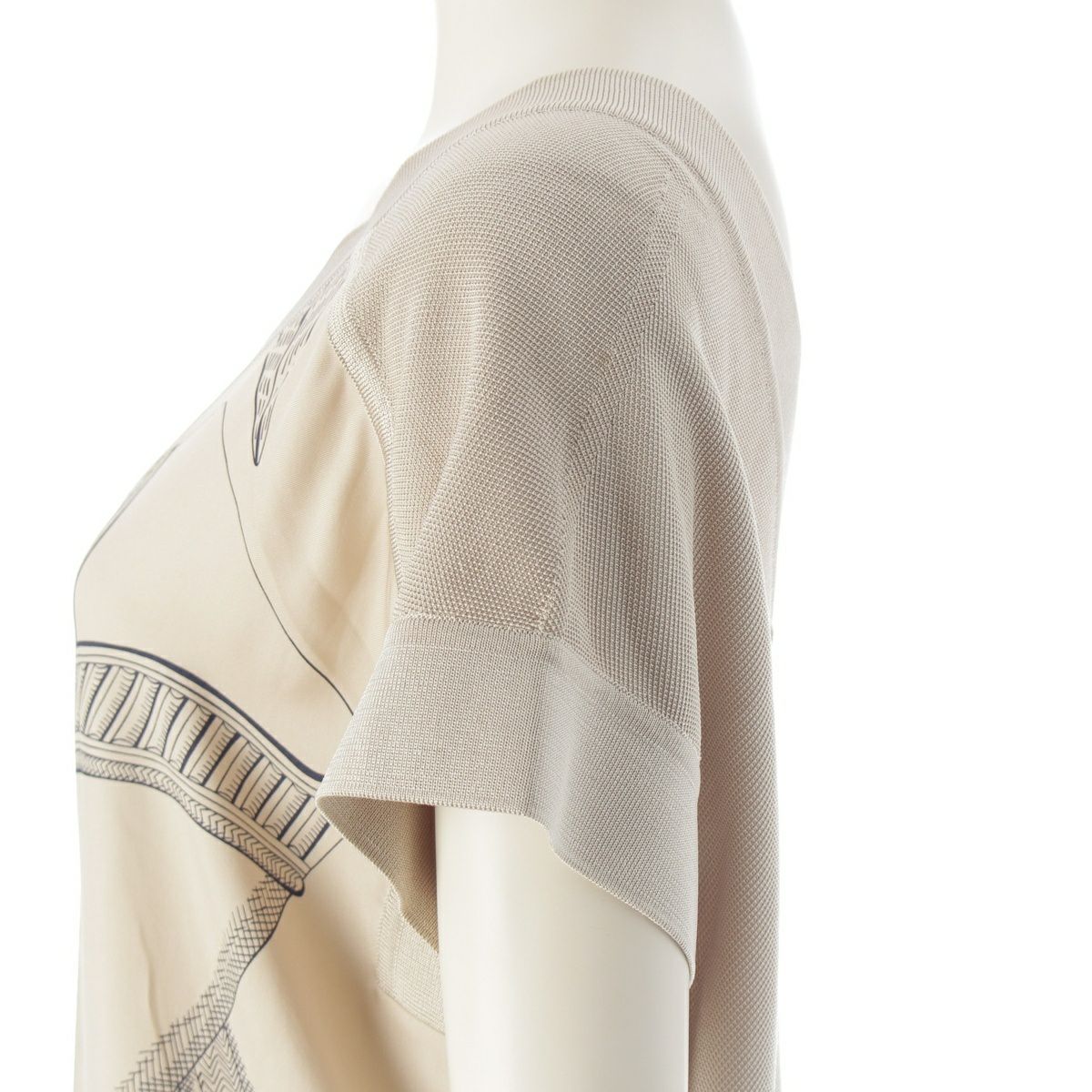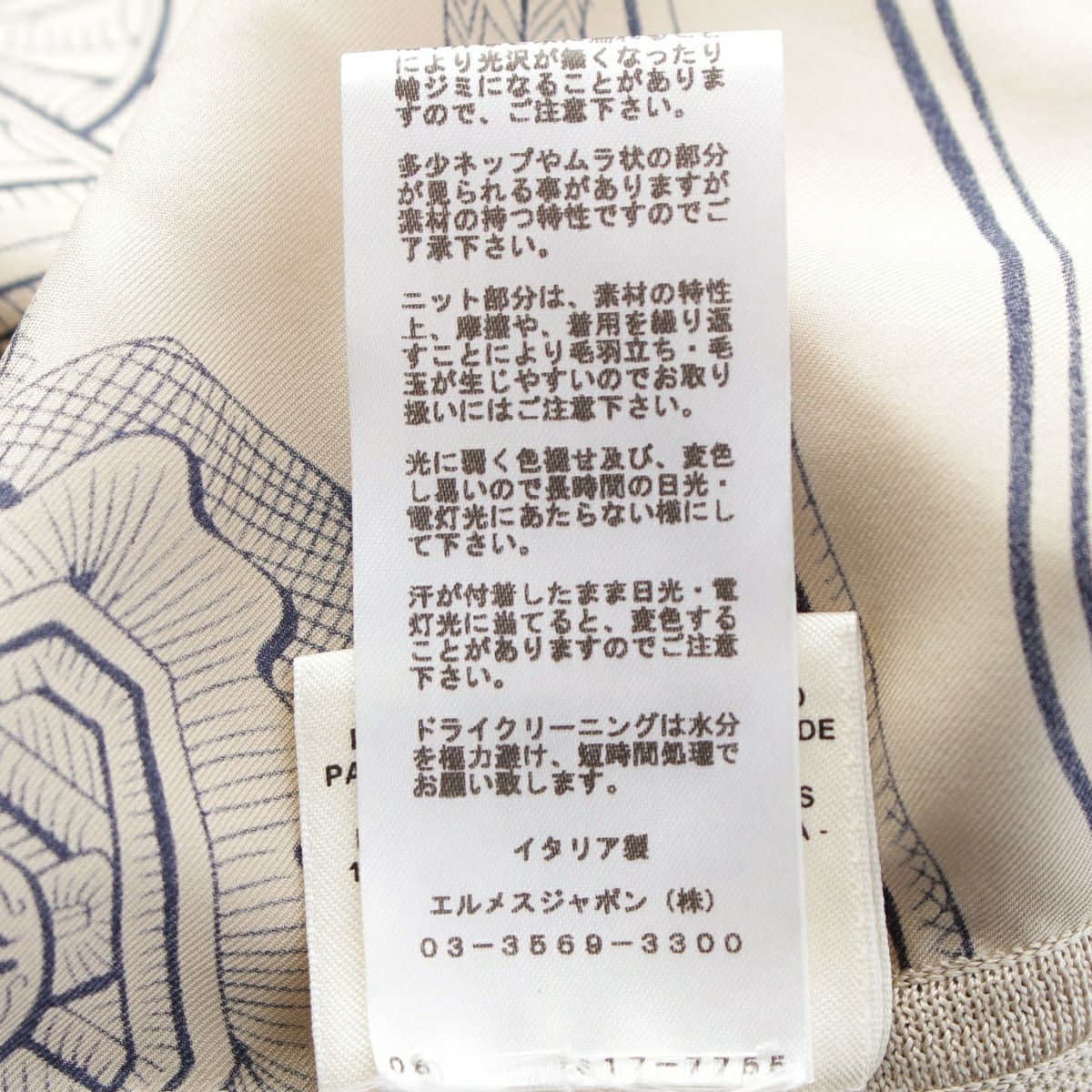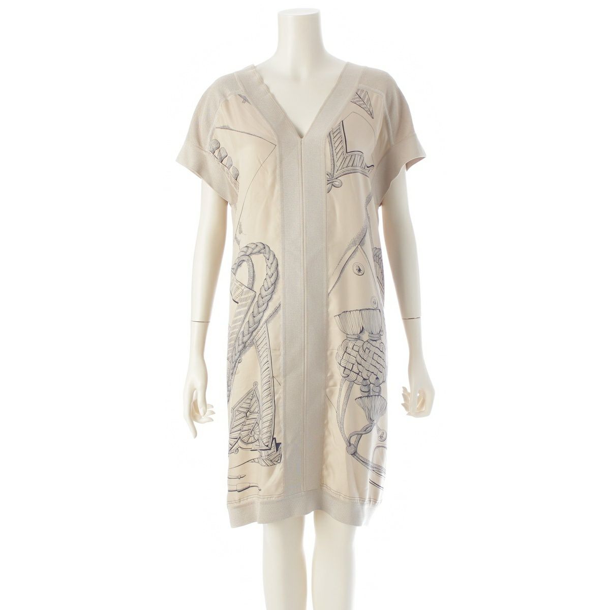 エルメス 21年 シルク Vネック ニット 切替 ツイルレーヌ ノースリーブ ワンピース ドレス ベージュ 34