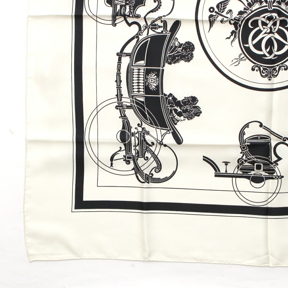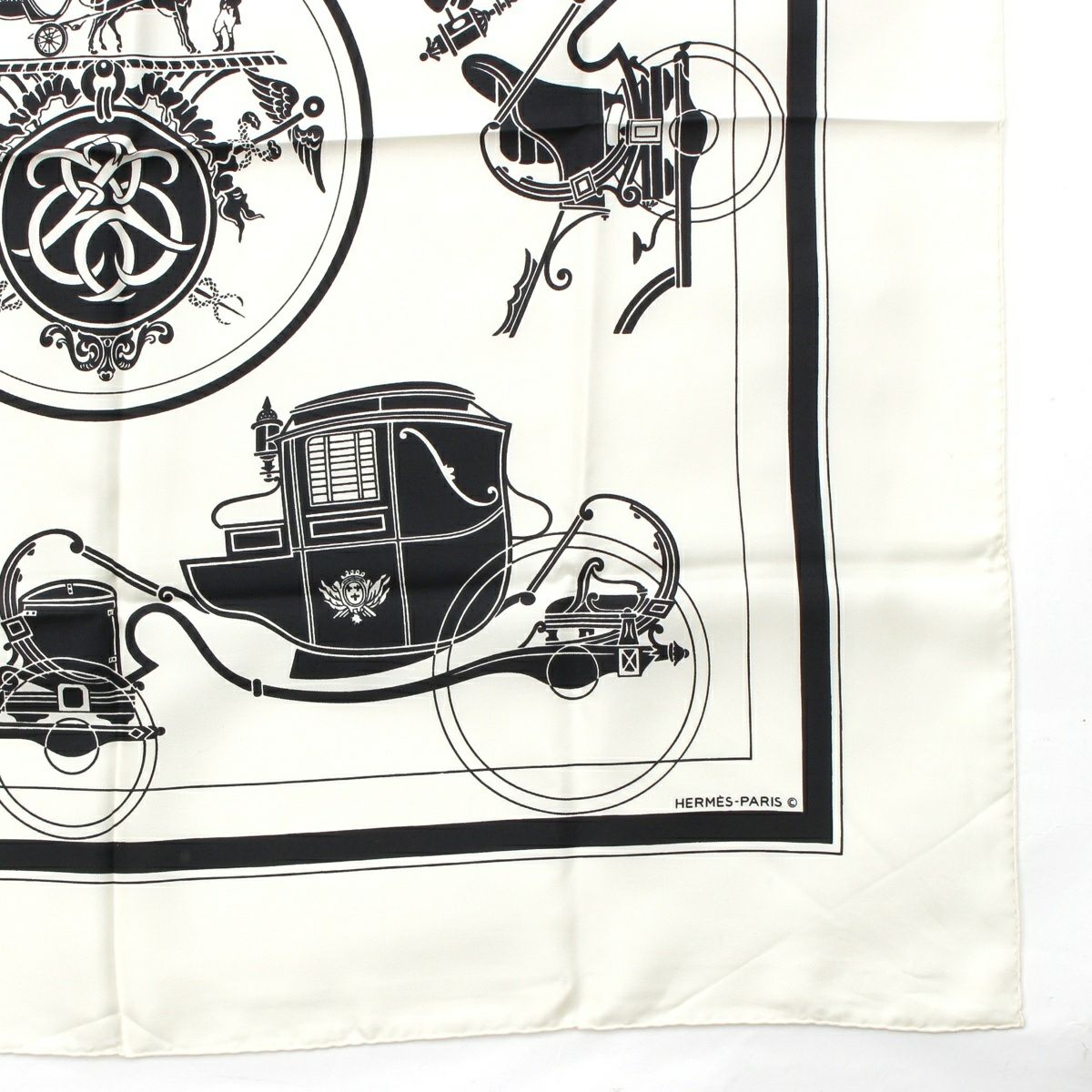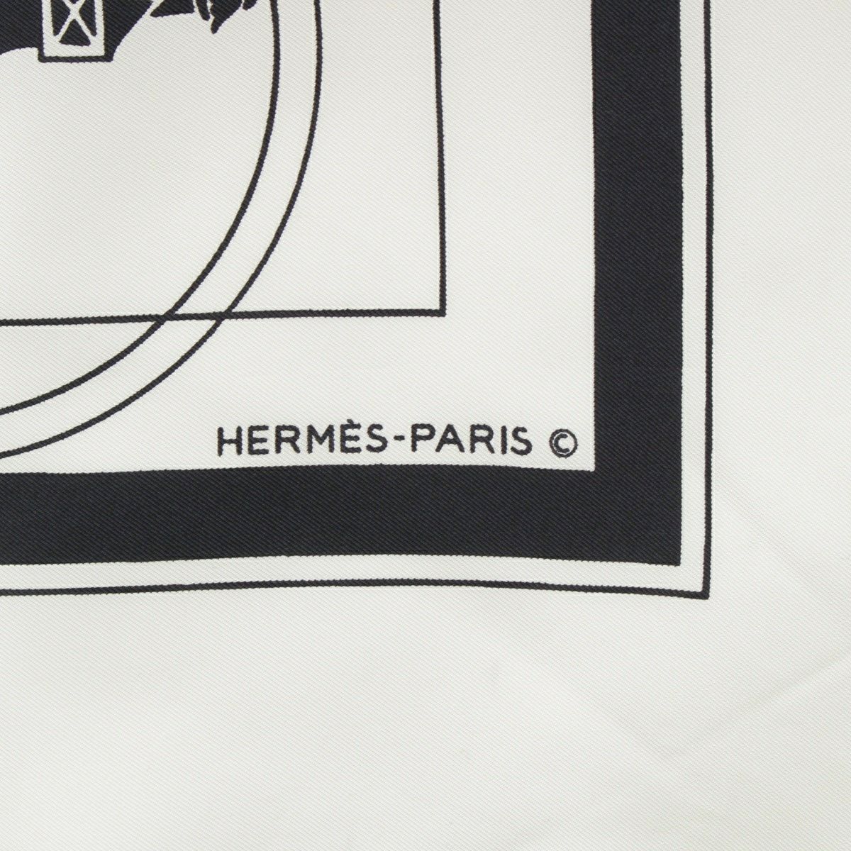 エルメス カレ90 EX-LIBRIS エクスリブリス シルク 馬車柄 スカーフ ホワイト ブラック