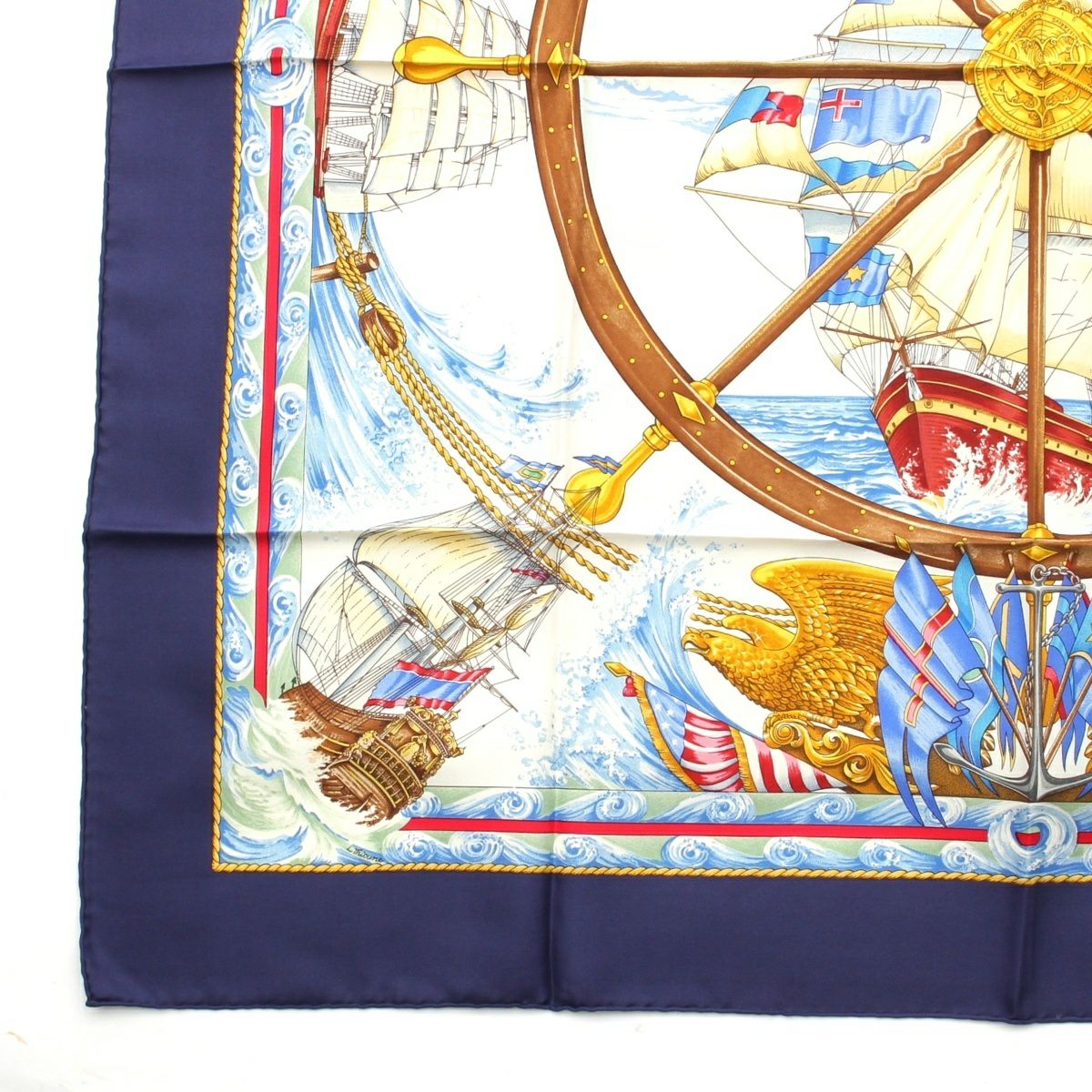 エルメス カレ90 VIVE LE VENT 風よ吹け シルク 船 航海 スカーフ ネイビー マルチカラー
