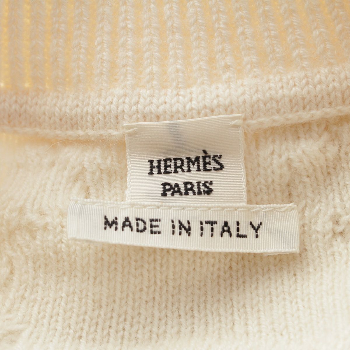 エルメス 22AW 朝の散歩 ウール カシミヤ 半袖 ニット トップス 2H2666D6 アイボリー 36