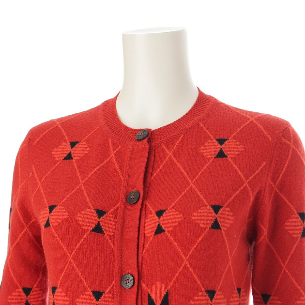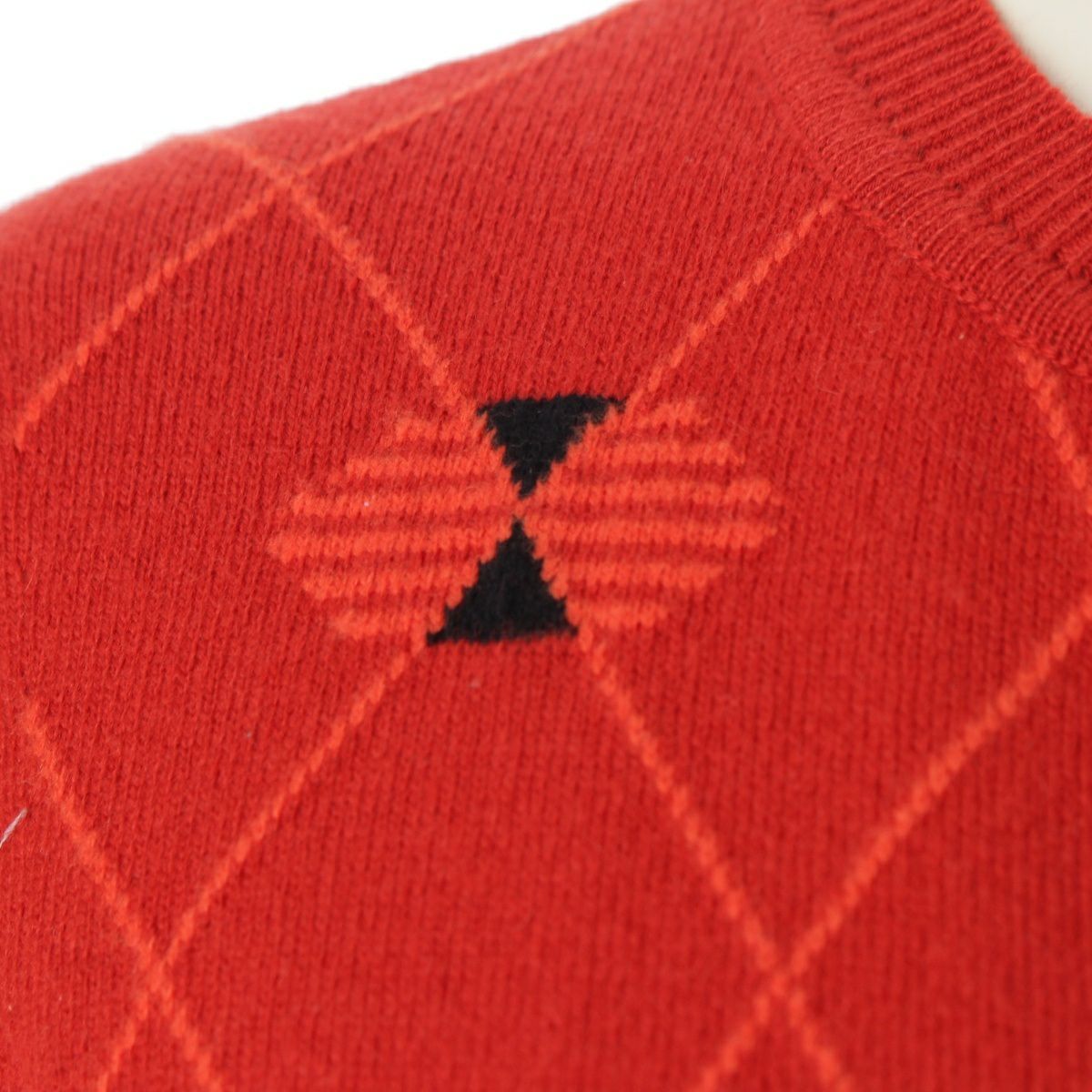 エルメス 20年 カシミヤ100% アーガイル柄 ニット 長袖 カーディガン トップス オレンジ 36