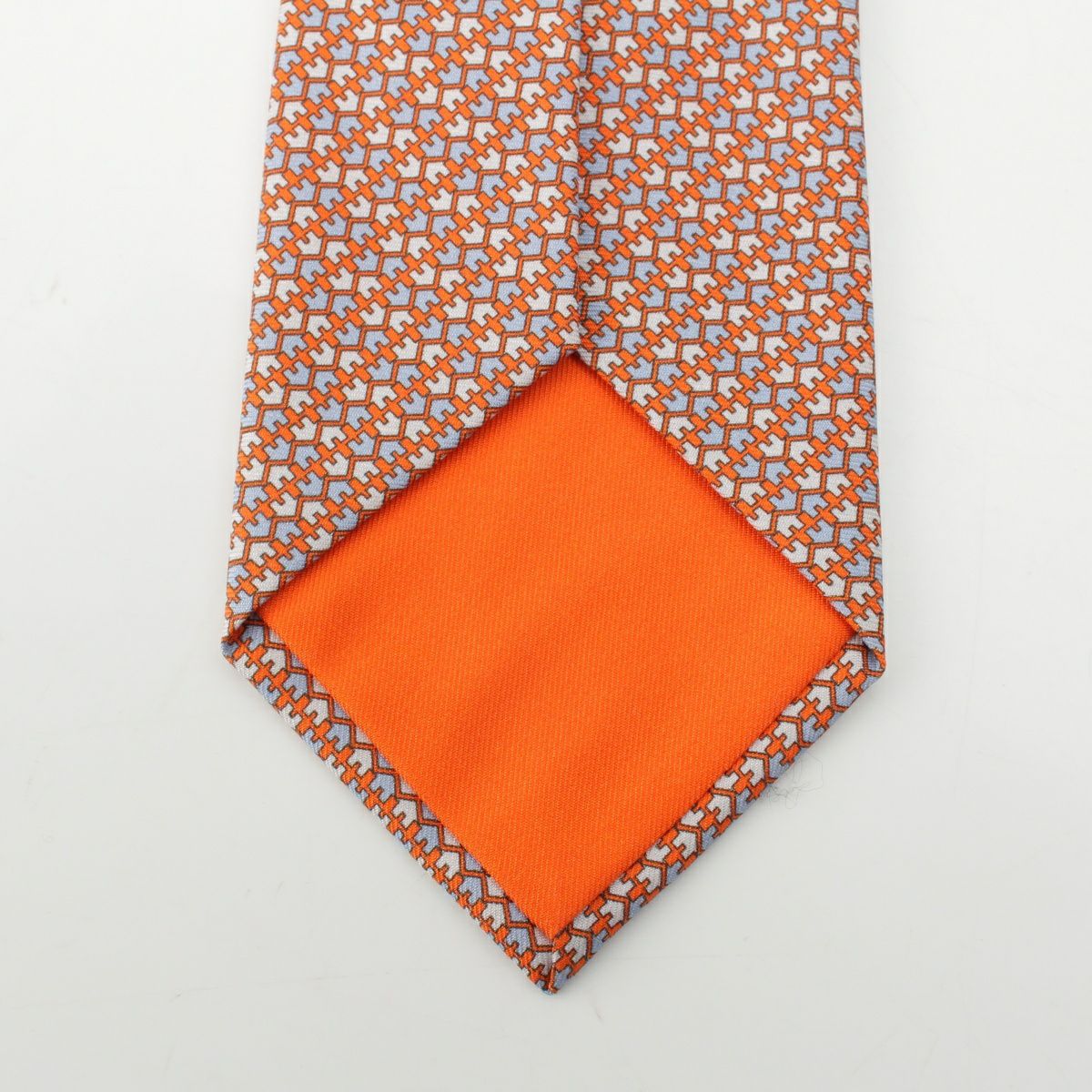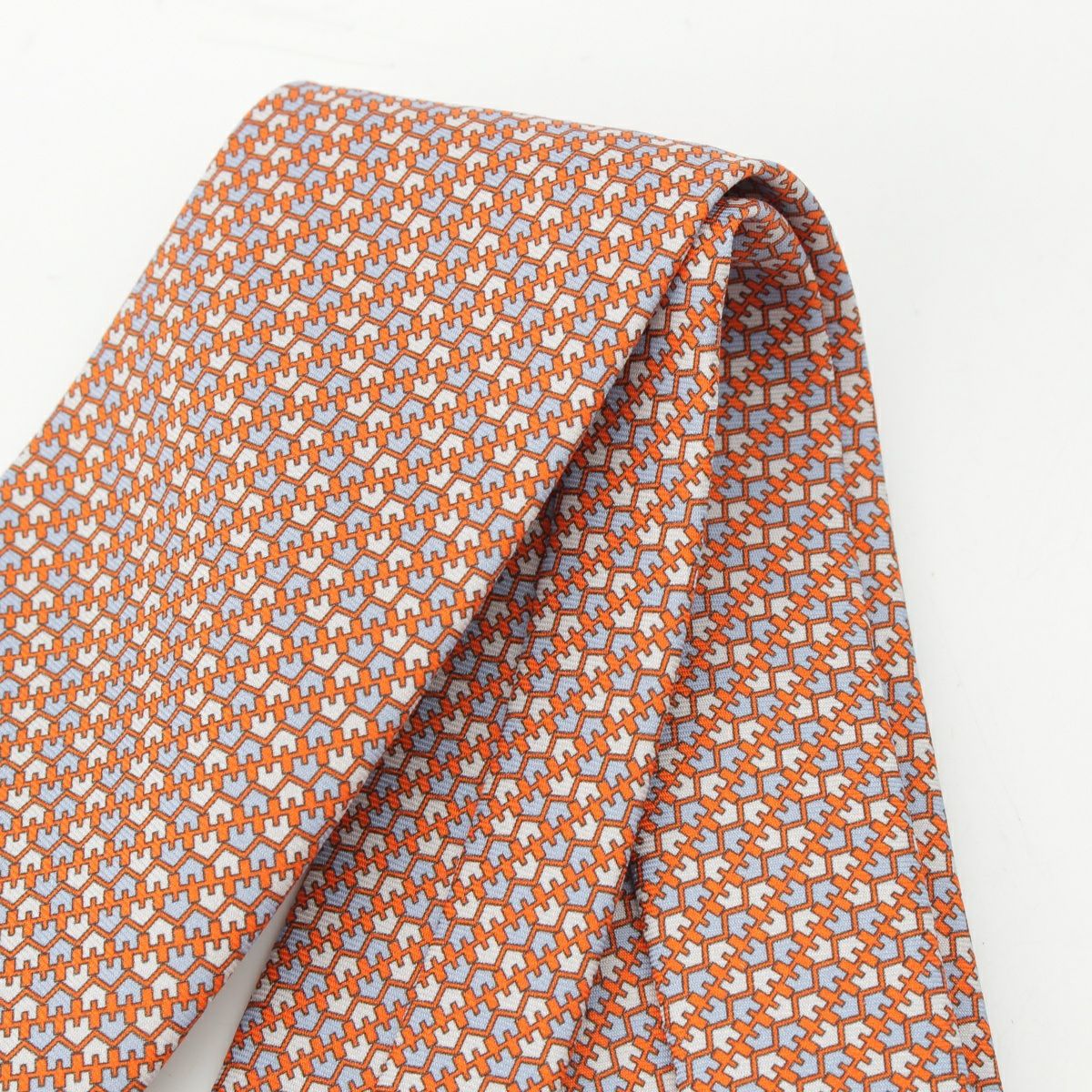 エルメス シルク CRAVETE HEAVY TWILL ネクタイ オレンジ シエル アイボリー