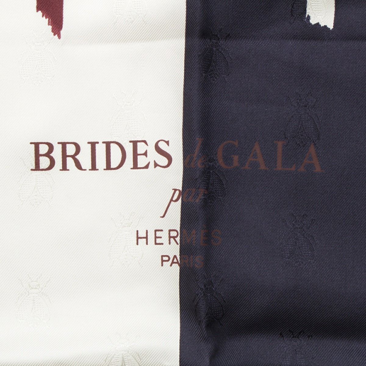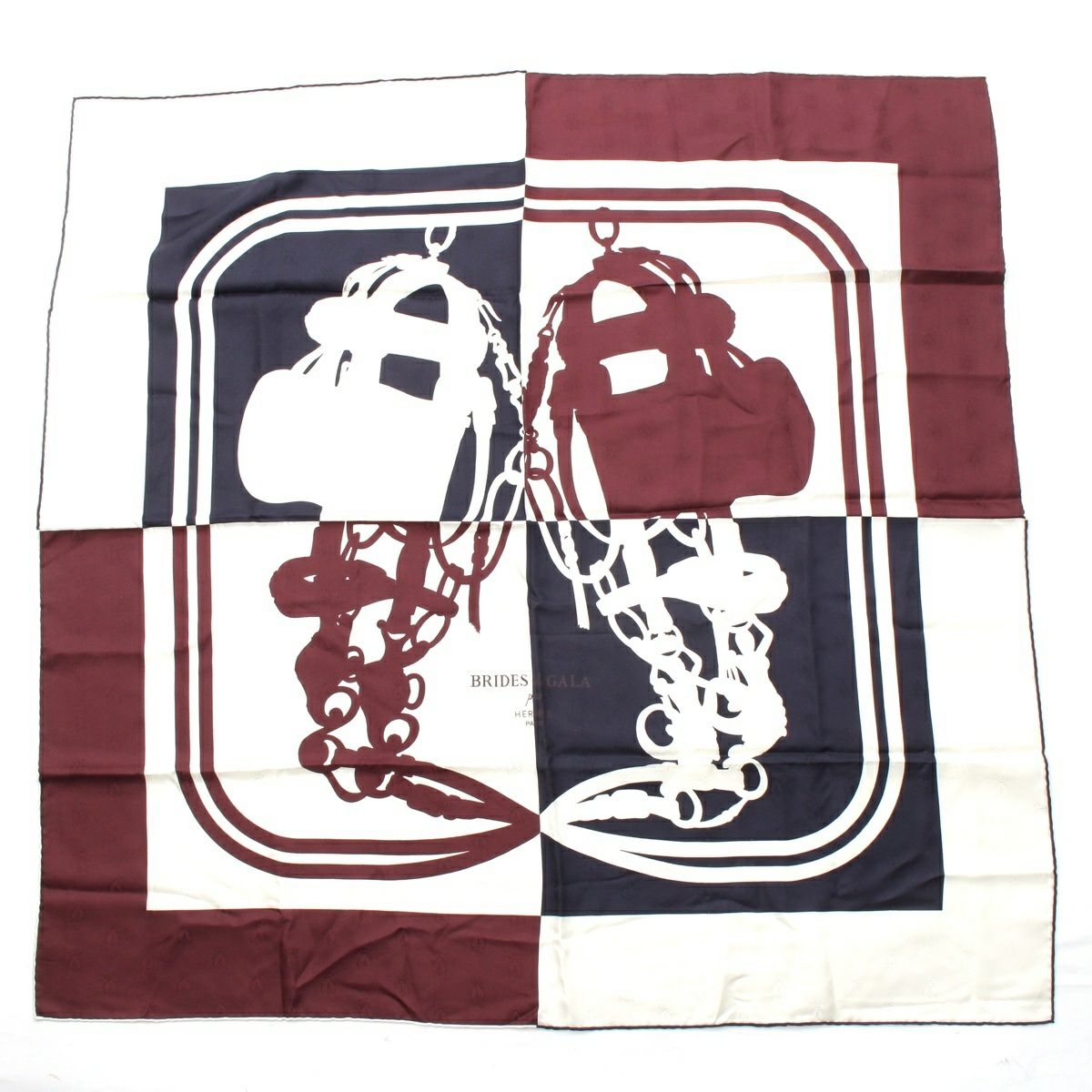 エルメス カレ90 BRIDES de GALA 式典用馬勒 シルク バイカラー スカーフ ホワイト ネイビー