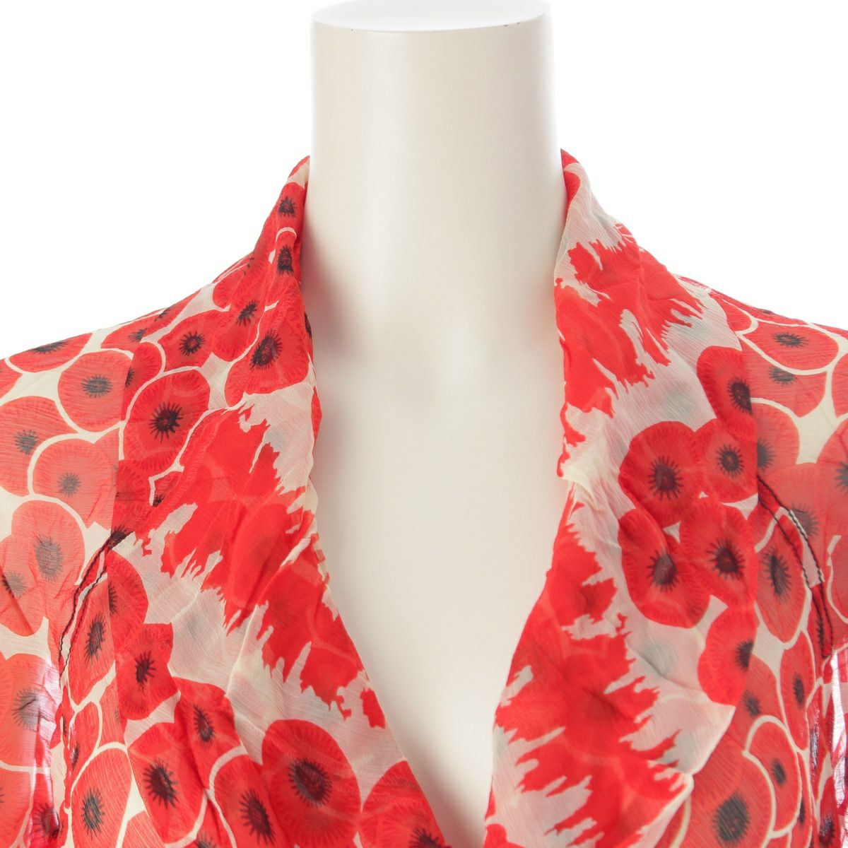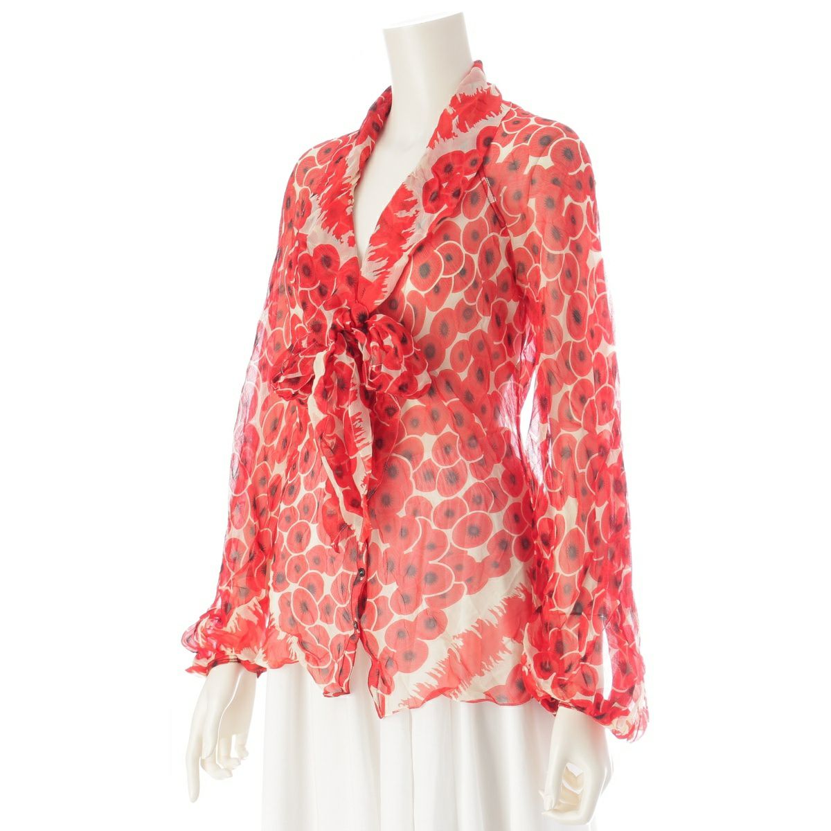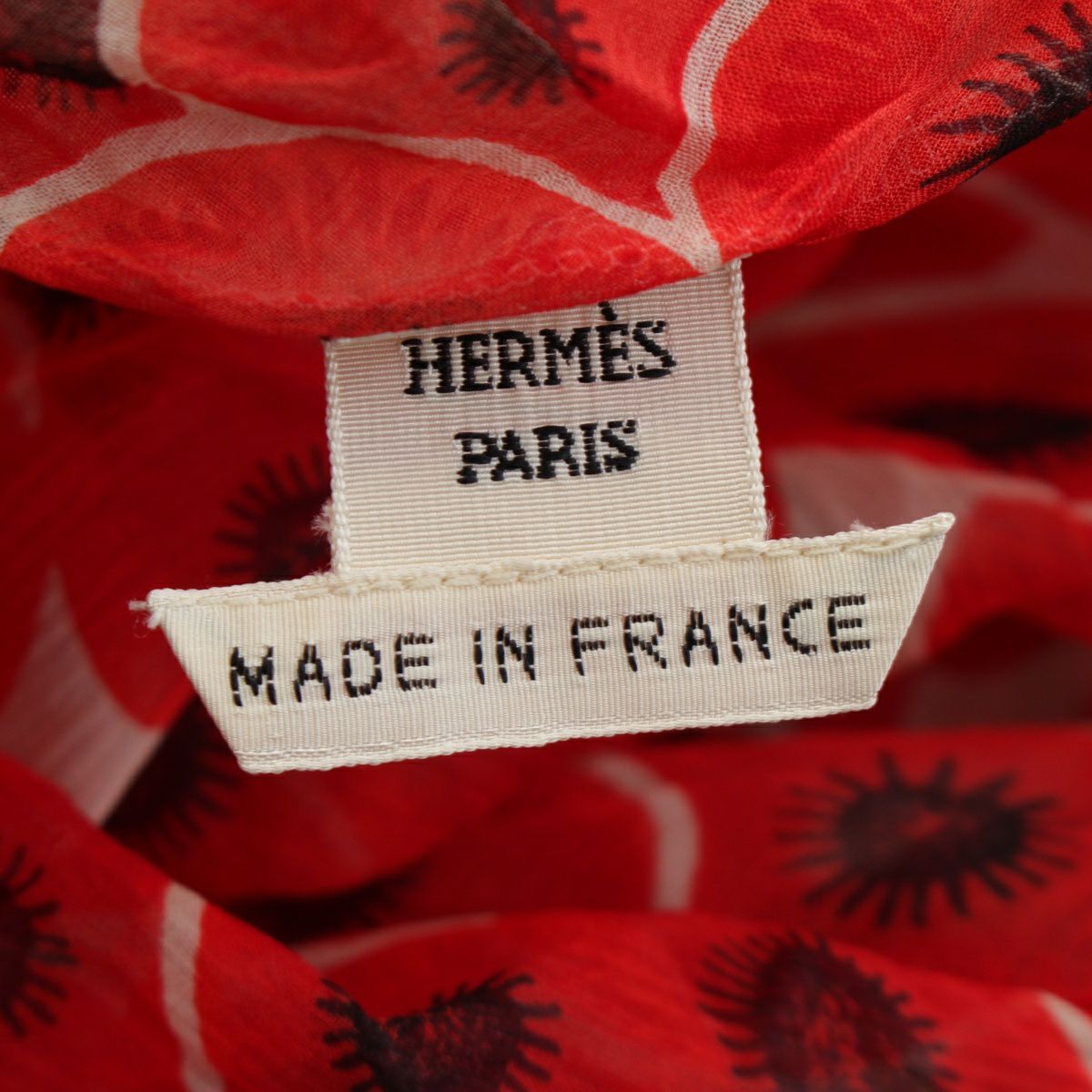 エルメス シルク ボウタイ 総柄 長袖シャツ レッド 38