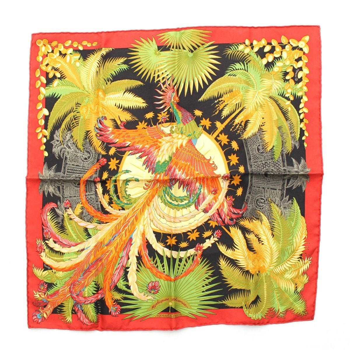 エルメス シルク ガヴロッシュ カレ45 Mythiques phoenix 不死鳥の神話 スカーフ ブラック レッド