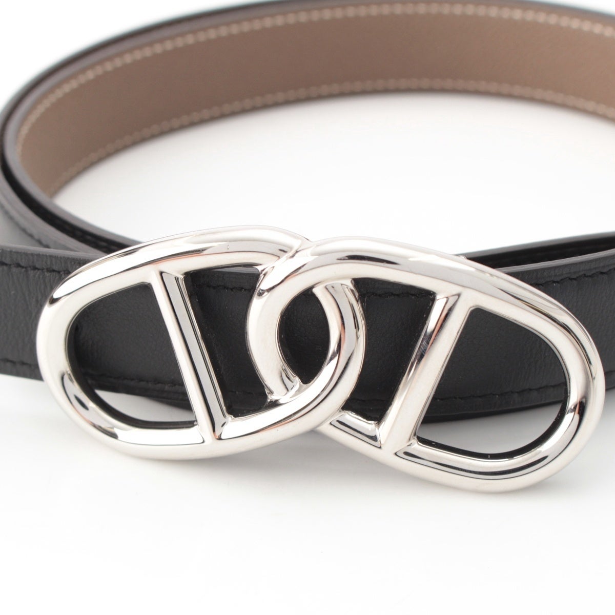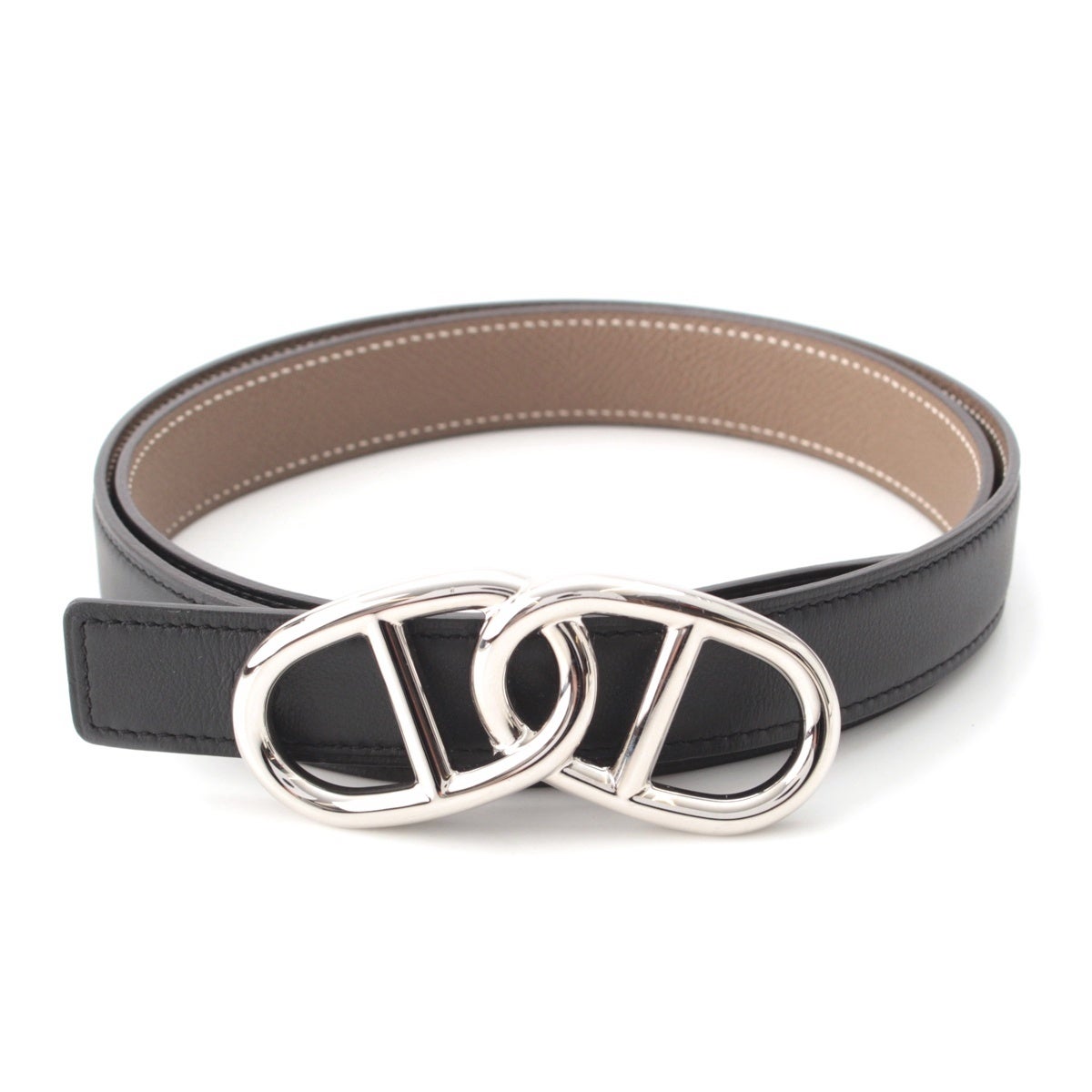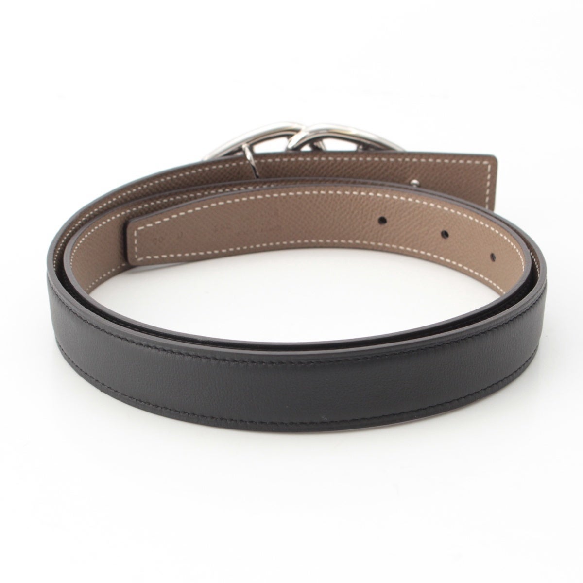 エルメス U刻印 エプソン シェーヌダンクル 2連 ベルト エトゥープ ブラック