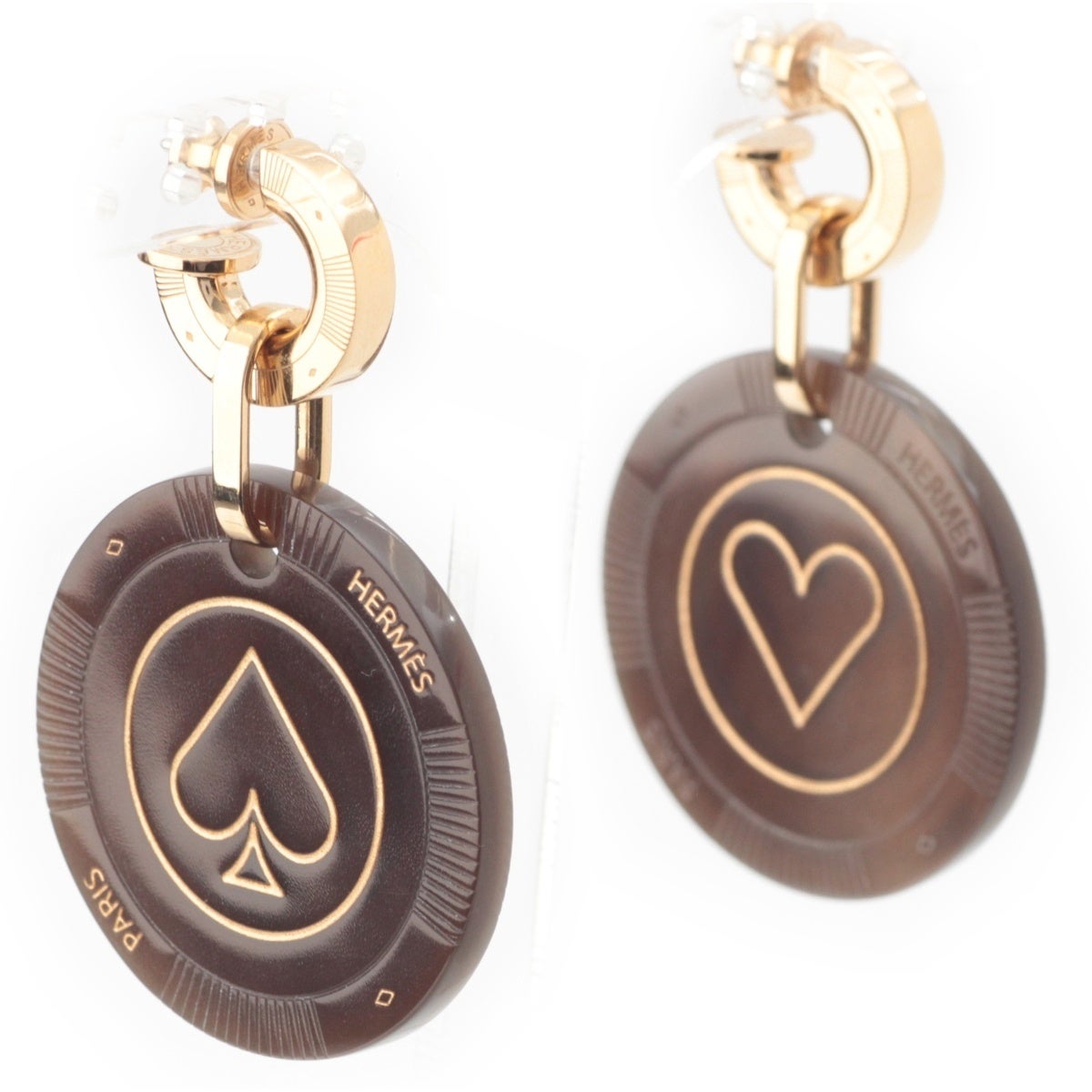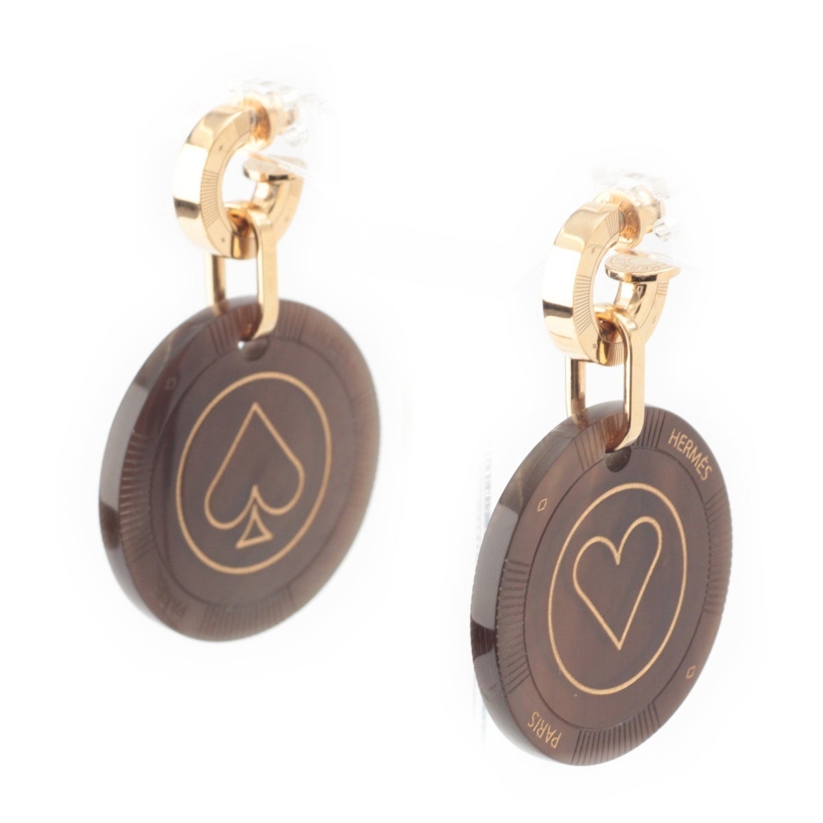 エルメス フェット ヴォ ジュ バッファローホーン ハート スペード バッファローホーン ピアス ブラウン