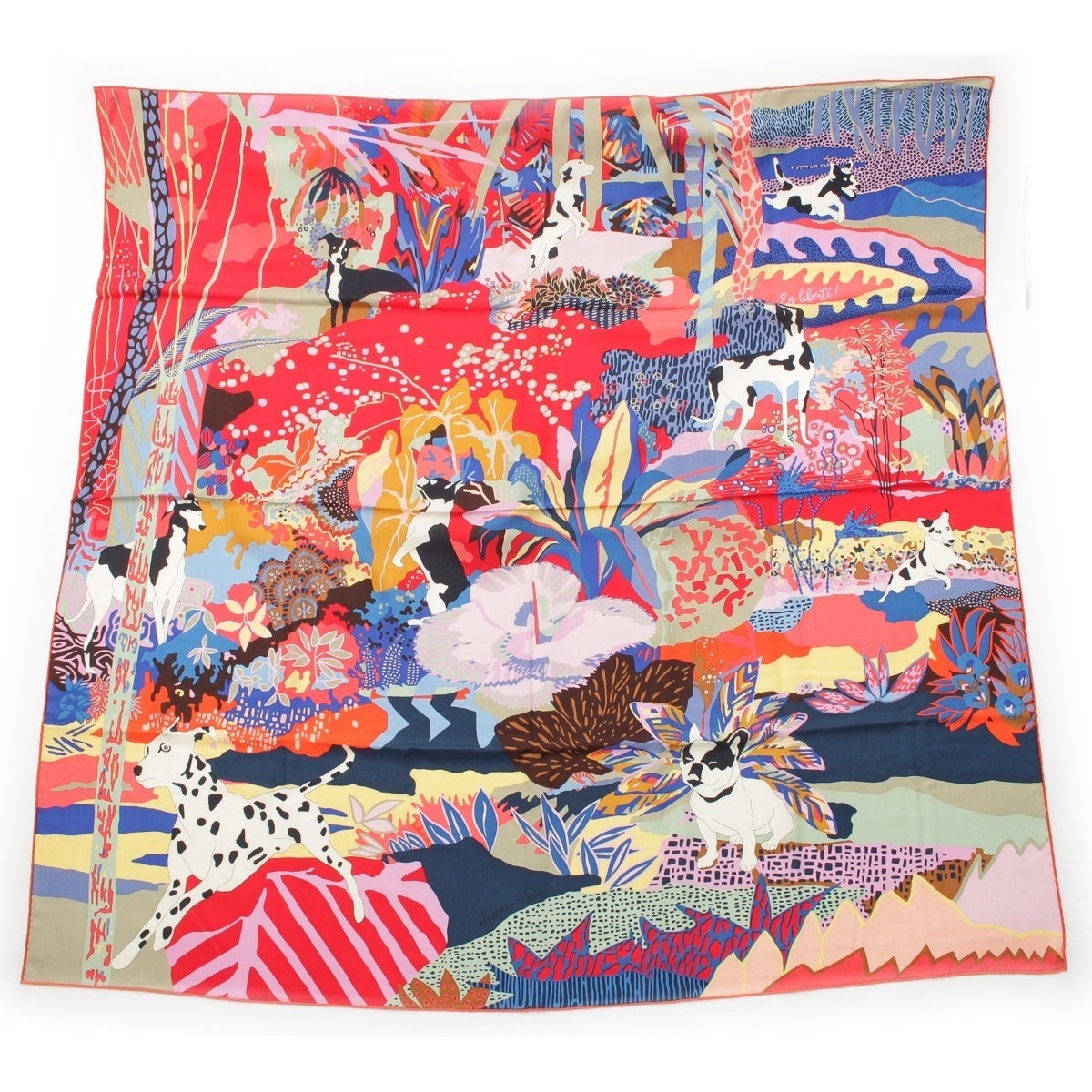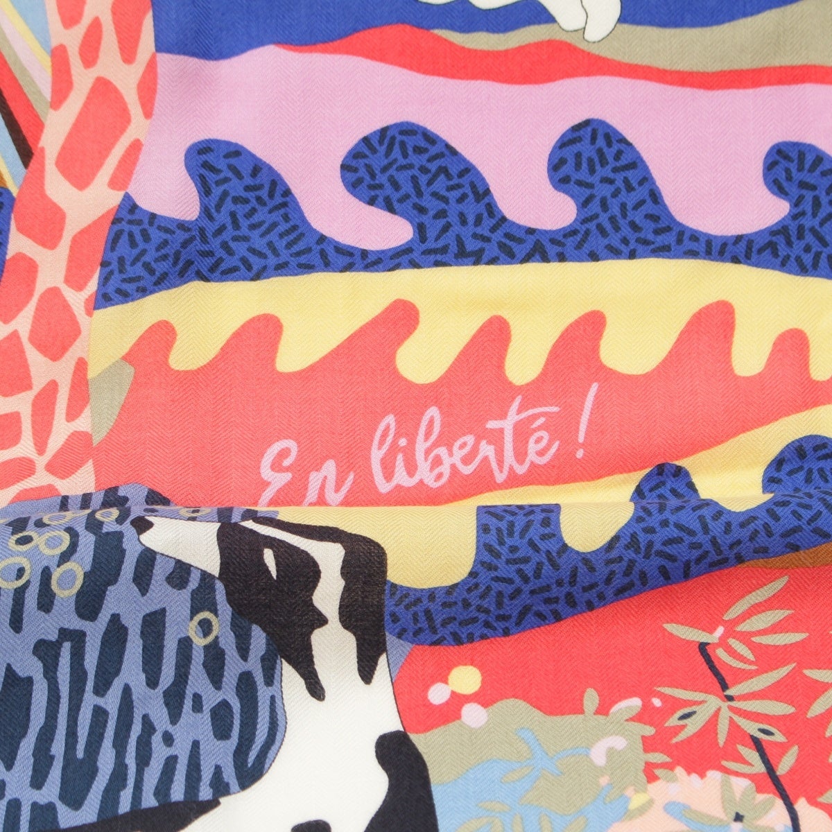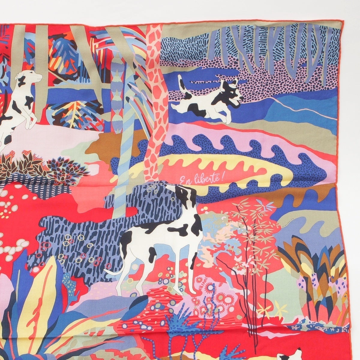 エルメス カレ140 カレジェアン En Liberte アン リベルテ! 自由に! カシミヤ スカーフ マルチカラー