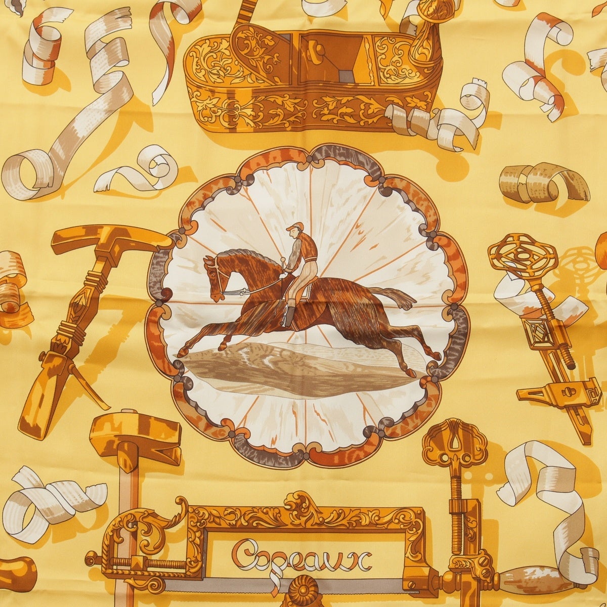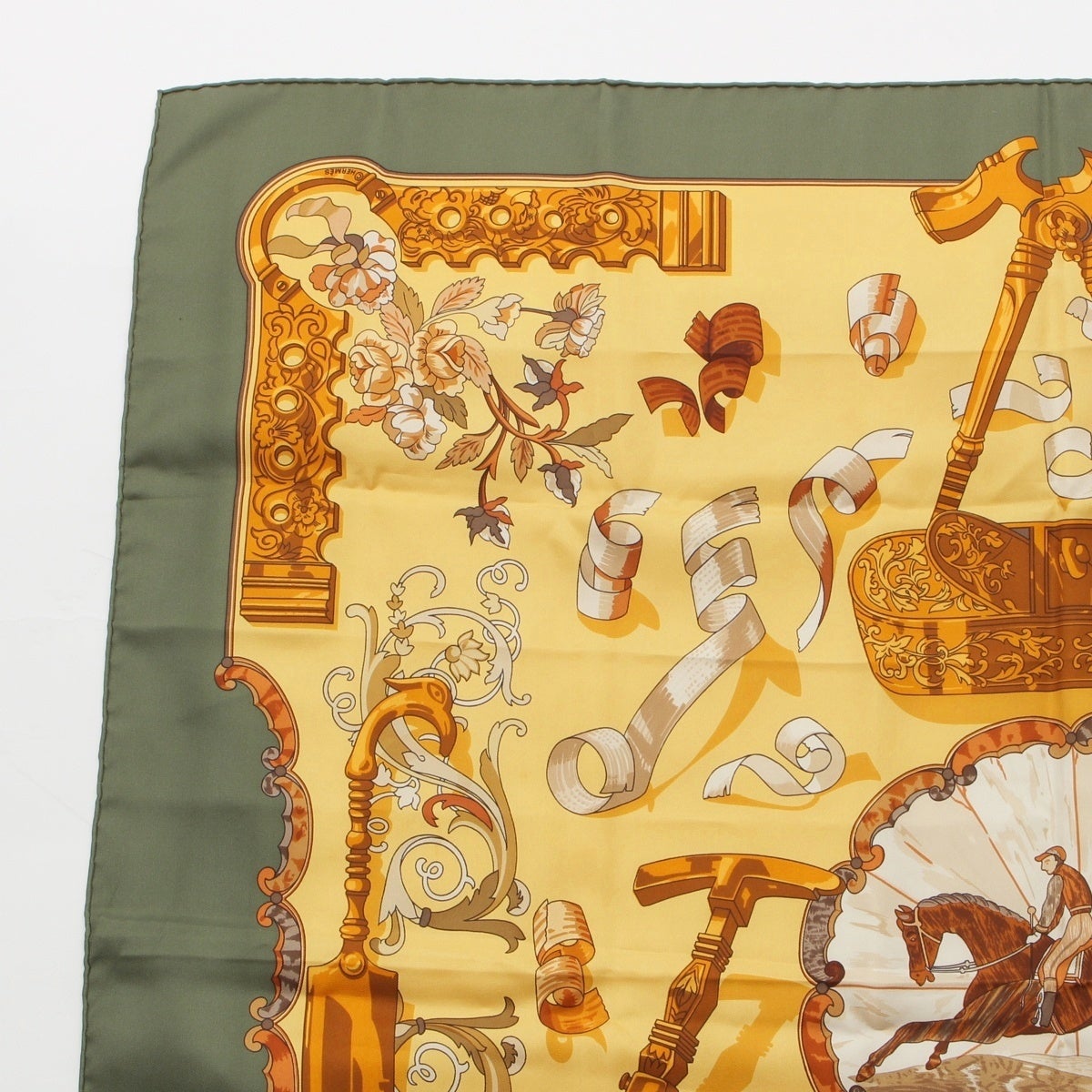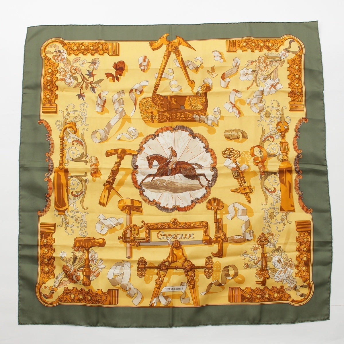エルメス カレ90 COPEAUX おが屑 シルク スカーフ イエロー カーキ