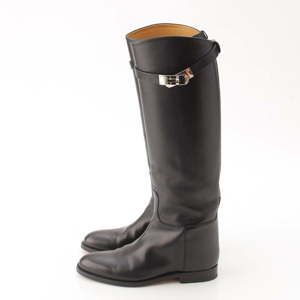 エルメス Hermes ジャンピング ケリー金具 レザー ロングブーツ シューズ ブラック 36