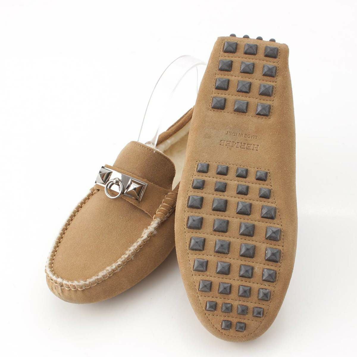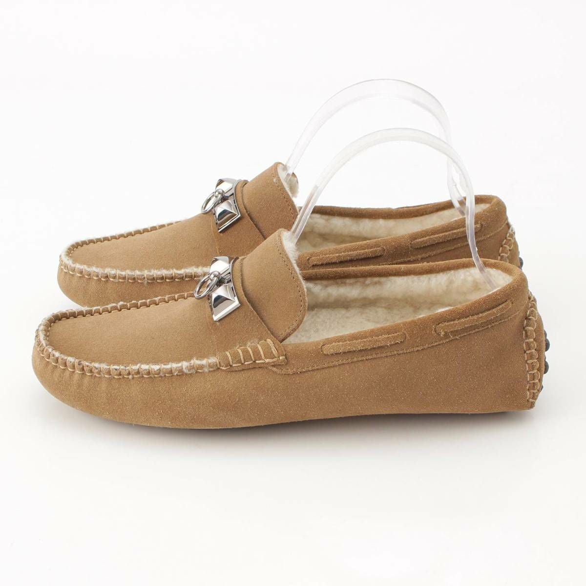 エルメス Hermes メンズ アーヴィング メドール スエード ボア ドライビングシューズ ベージュ 391/2