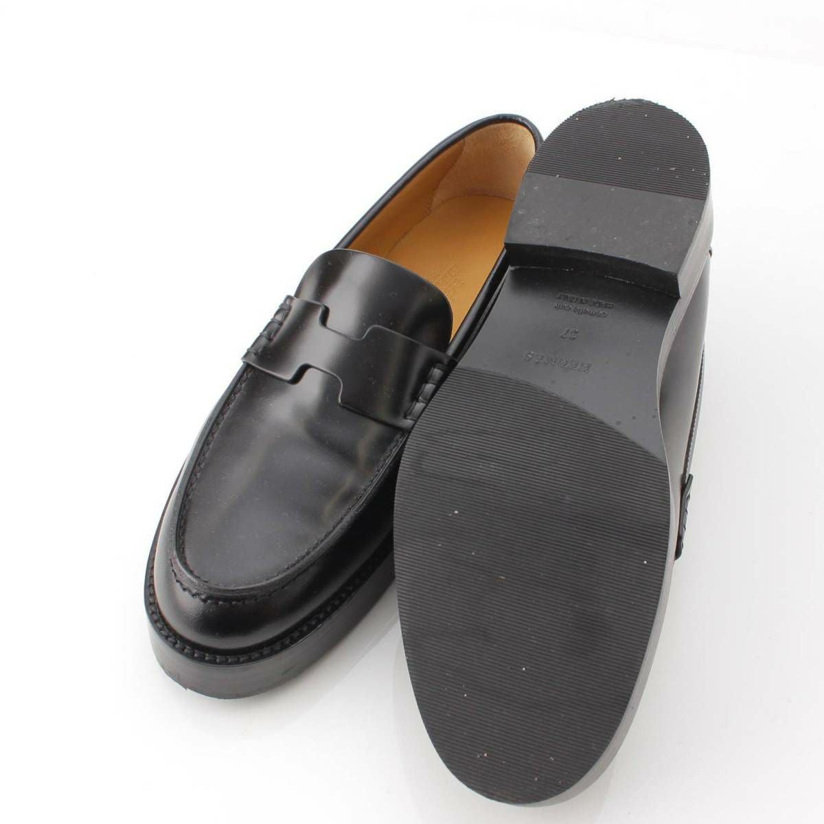 エルメス Hermes Hour アワー カーフレザー Hロゴ モカシン ローファー シューズ ブラック 37