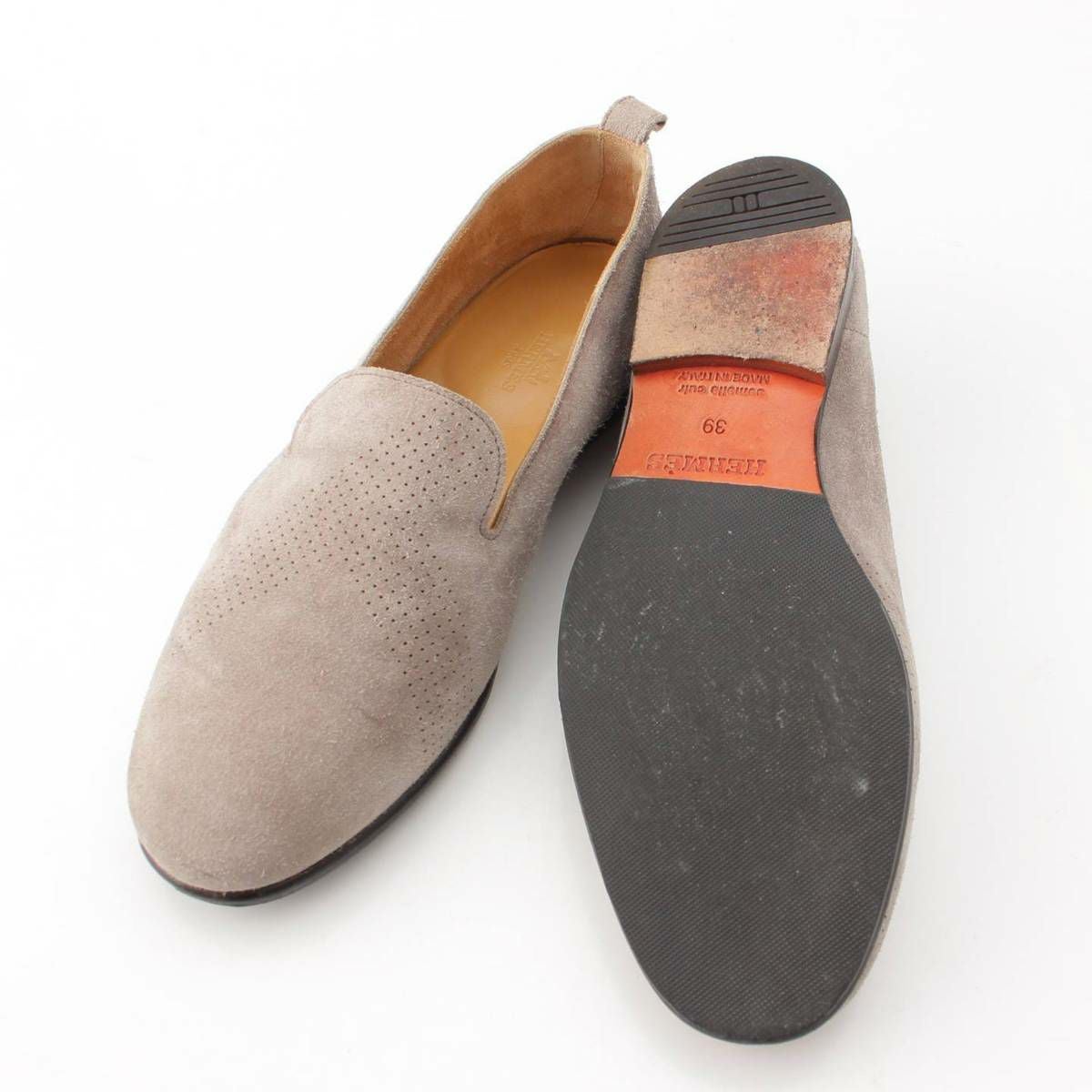 エルメス Hermes スエード Hロゴ パンチング ローファー シューズ グレージュ 39