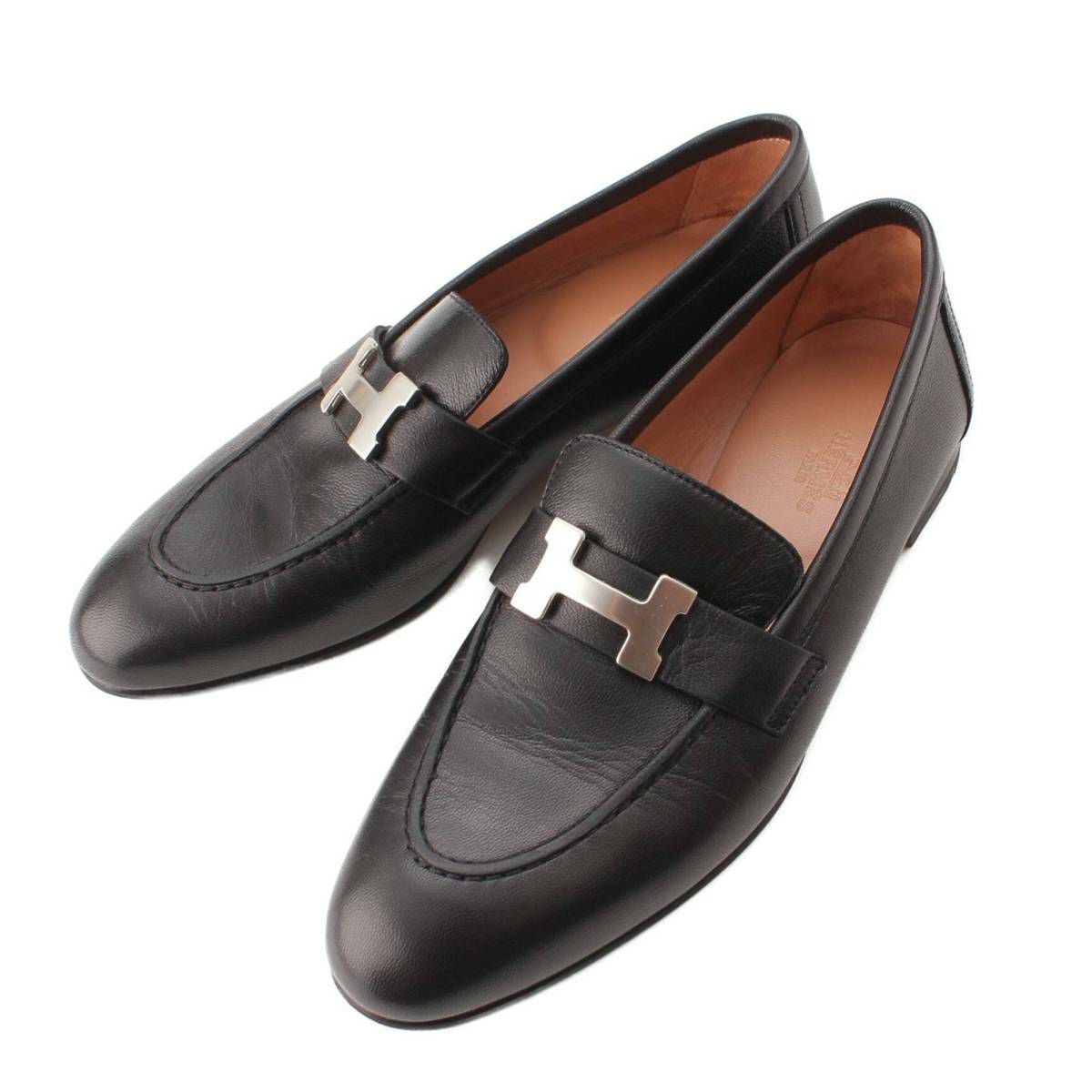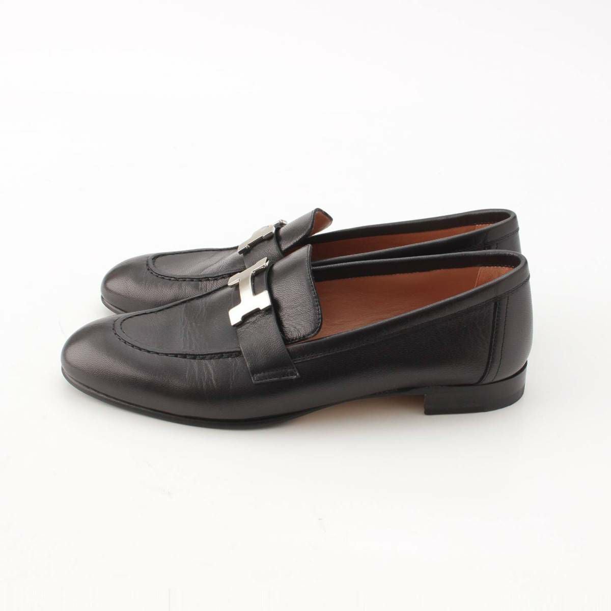 エルメス コンスタンス H金具 レザー モカシン ローファー シューズ ブラック 36 1/2