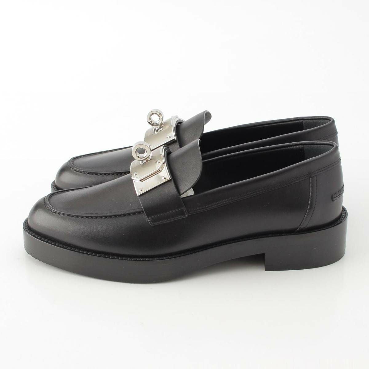 エルメス Hermes 23AW HOT ホット ケリーバックル レザー モカシン ローファー シューズ ブラック 38