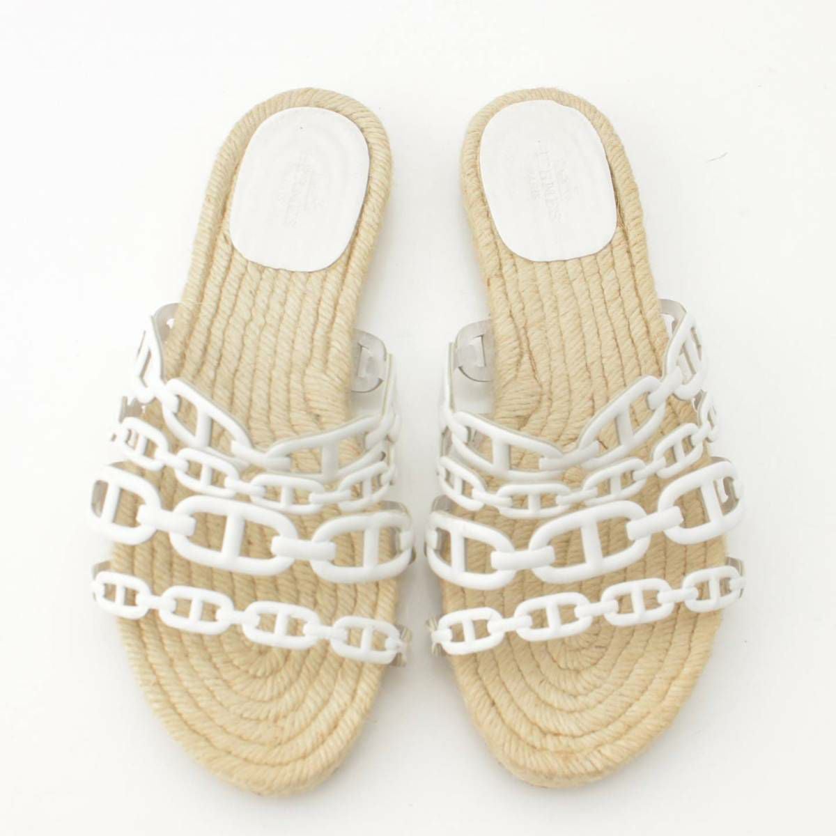 エルメス Hermes アンコーヌ シェーヌダンクル エスパドリーユ フラットサンダル ホワイト 36