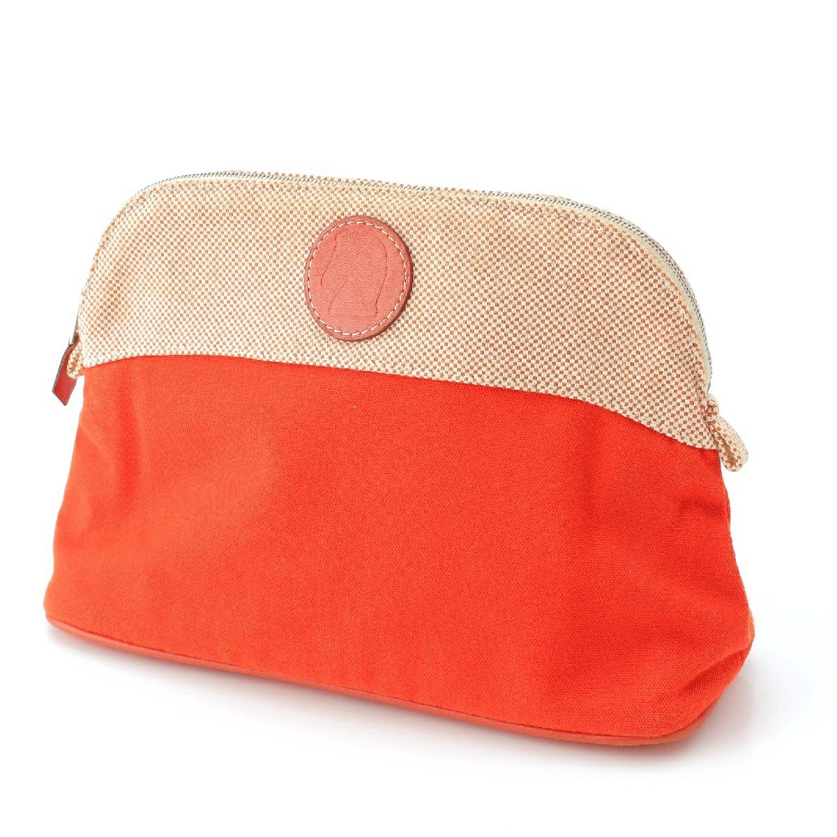エルメス ボリードポーチ MM25 トワルアッシュ オフィシエ サマルカンド バイカラー 化粧ポーチ 小物入れ MM25 テラコッタ ベージュ オレンジ