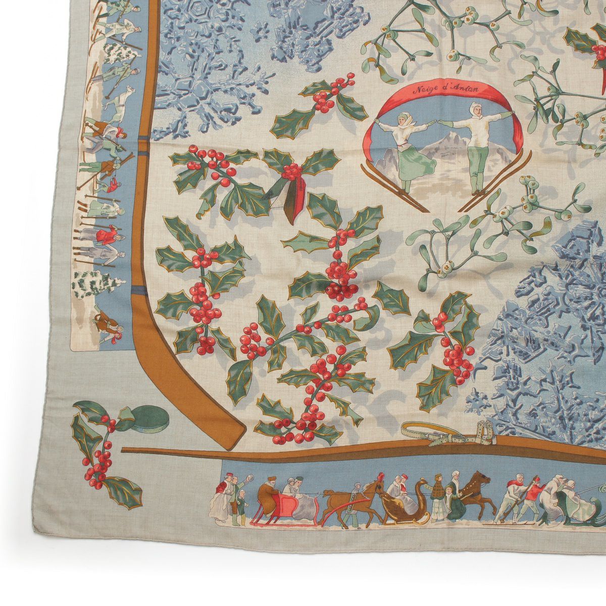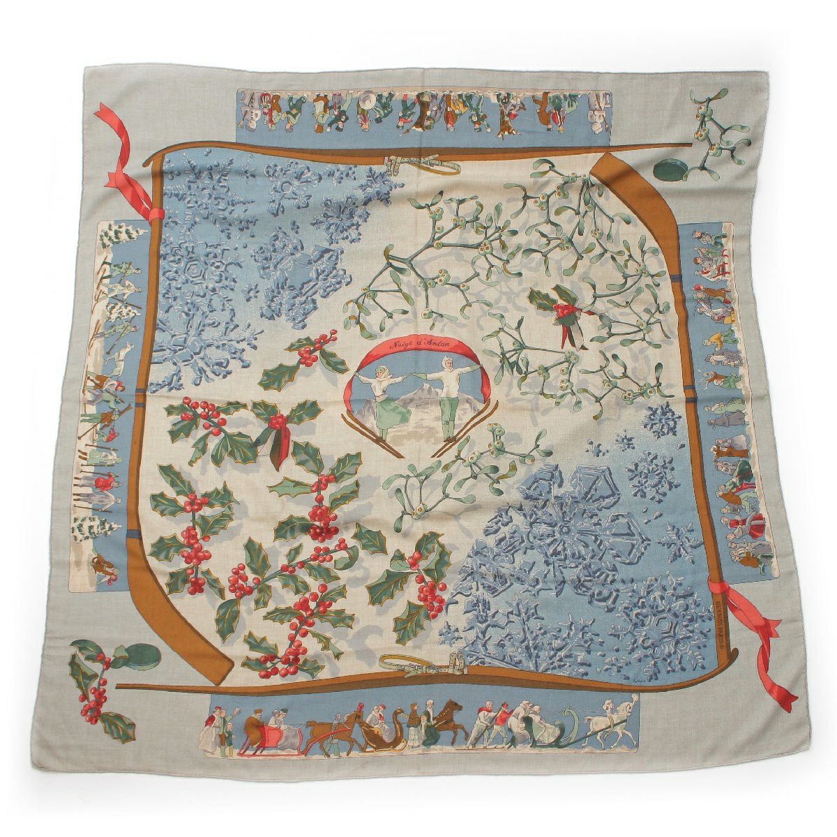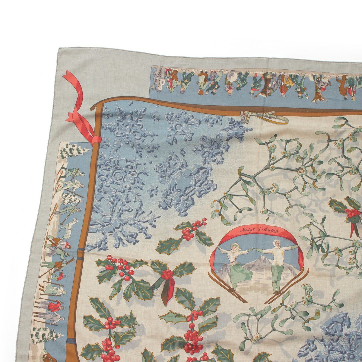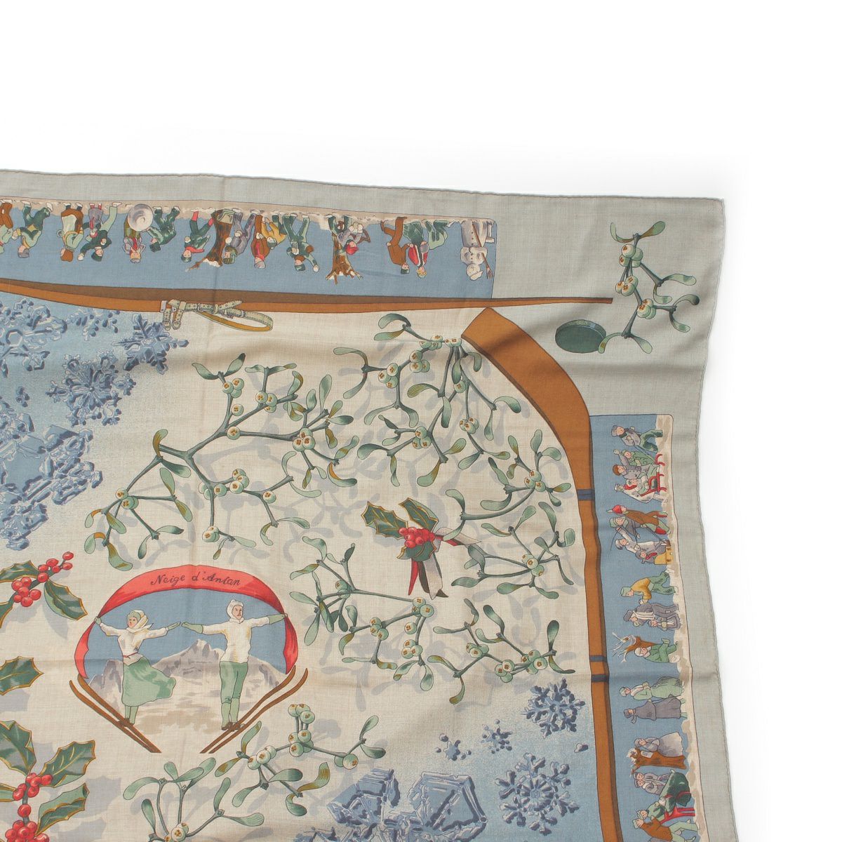 エルメス カレジェアン140 neige d antan 去年の雪 カシミヤ シルク 大判 スカーフ ストール ショール ブルー グレー